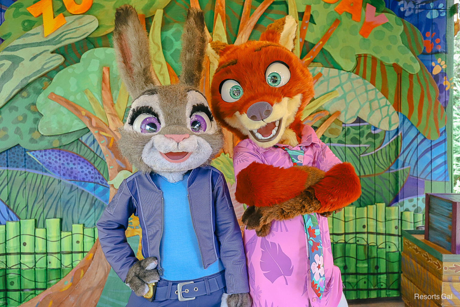 Judy Hopps and Nick Wilde meet guests daily at Disney’s Animal Kingdom. They meet intermittently throughout the day on Discovery Island at a location called the Zoogether Day Gathering Spot…