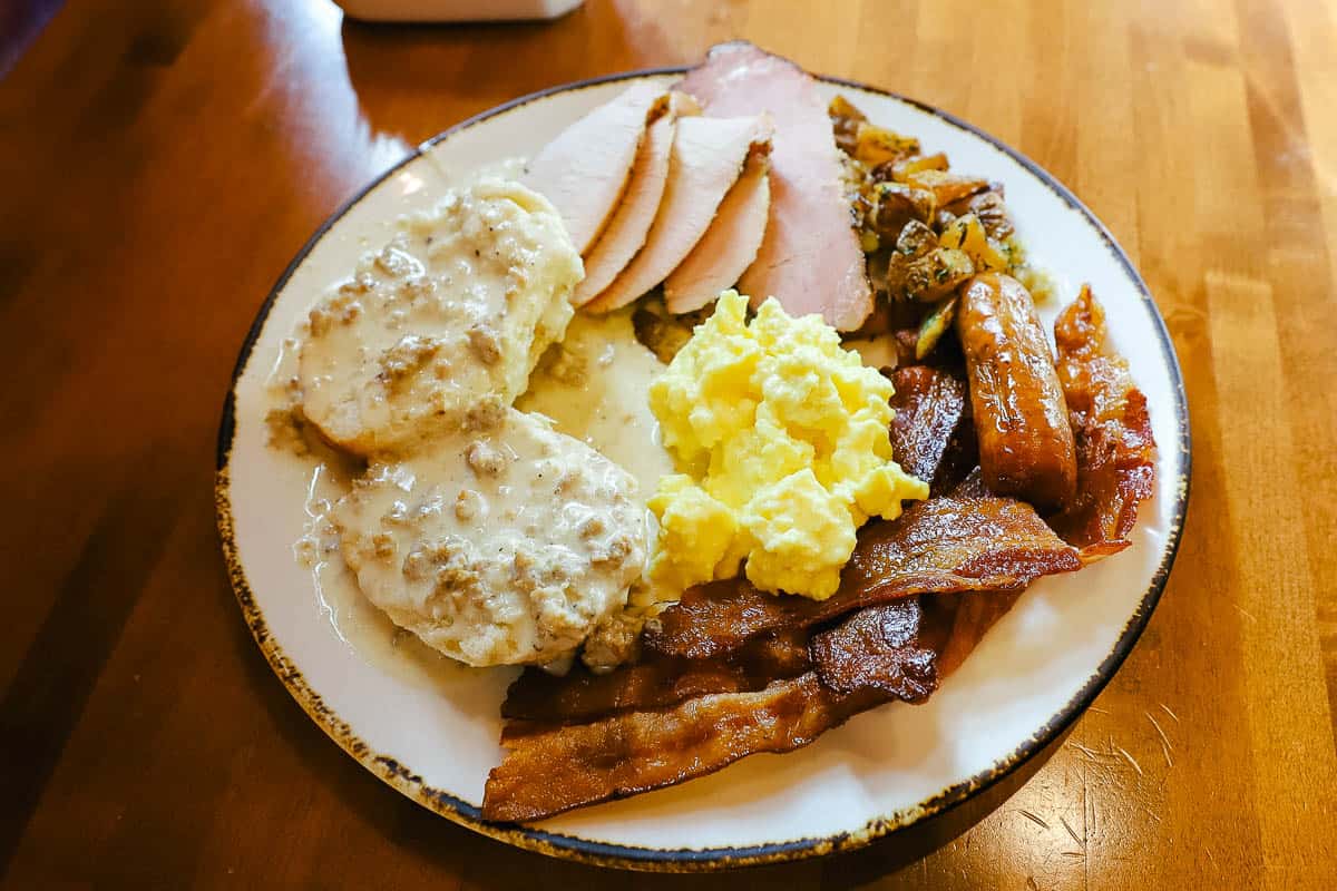 Here’s how my plate turned out. Had I thought about it, I would have had the biscuit and gravy on a separate plate.