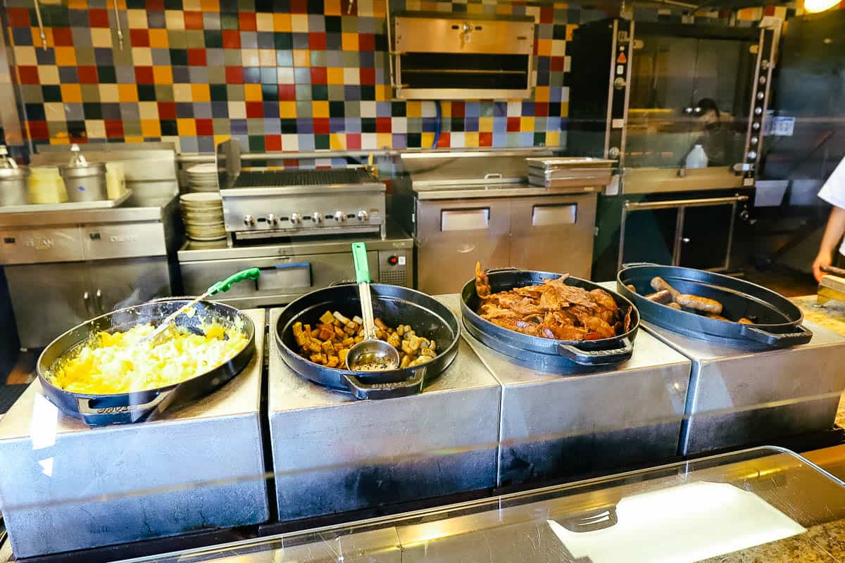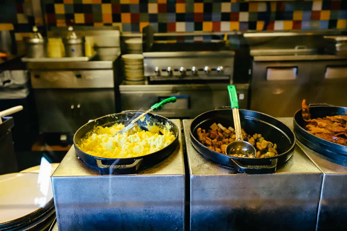 Some mornings, you just want to throw on some clothes and grab breakfast at your hotel while on vacation. Thankfully, if you’re staying at Disney’s Swan and Dolphin, you have a few options. This review of Fresh Mediterranean Market’s breakfast buffet will discuss one of those options in detail. We’ll preview the buffet items, hours, and prices. As far as location goes, Fresh Mediterranean Market is on the Dolphin side of the resort, on the ground level near the resort-side entrance.