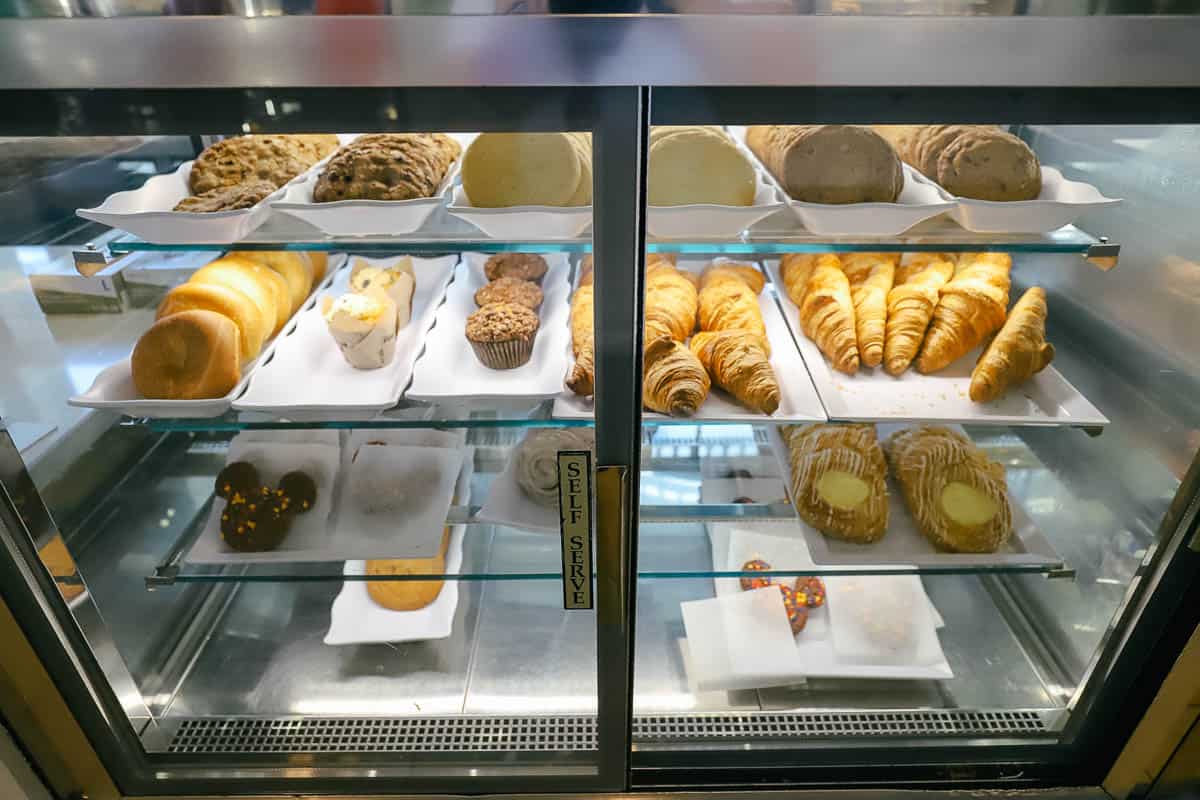 If you decide to mobile order, all of the restaurant’s items are listed in the My Disney Experience app. For example, you can add a pastry item to your mobile order. Even the things you would normally pick up separately from the cooler should be available in the app. Here are photos of all the items that were present on this visit.