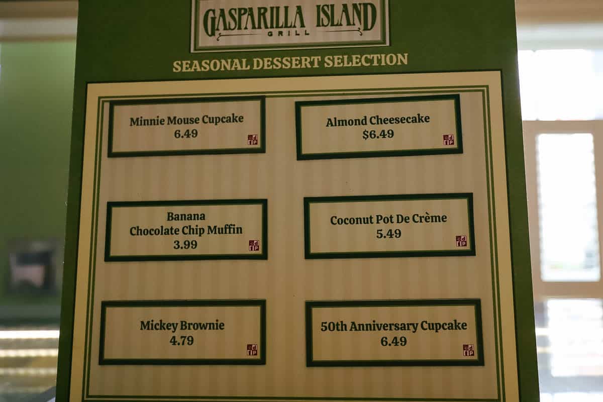 Gasparilla Island Grill is usually open daily between 6:00 a.m. and 12:00 a.m. The restaurant serves breakfast, lunch, and dinner. It also offers various snack items and a late-night menu. As with all restaurants, menu items come and go. Therefore, everything photographed in this review might not be available on your visit. For current items and prices, you can preview the entire lunch and dinner menu here on Disney’s site.