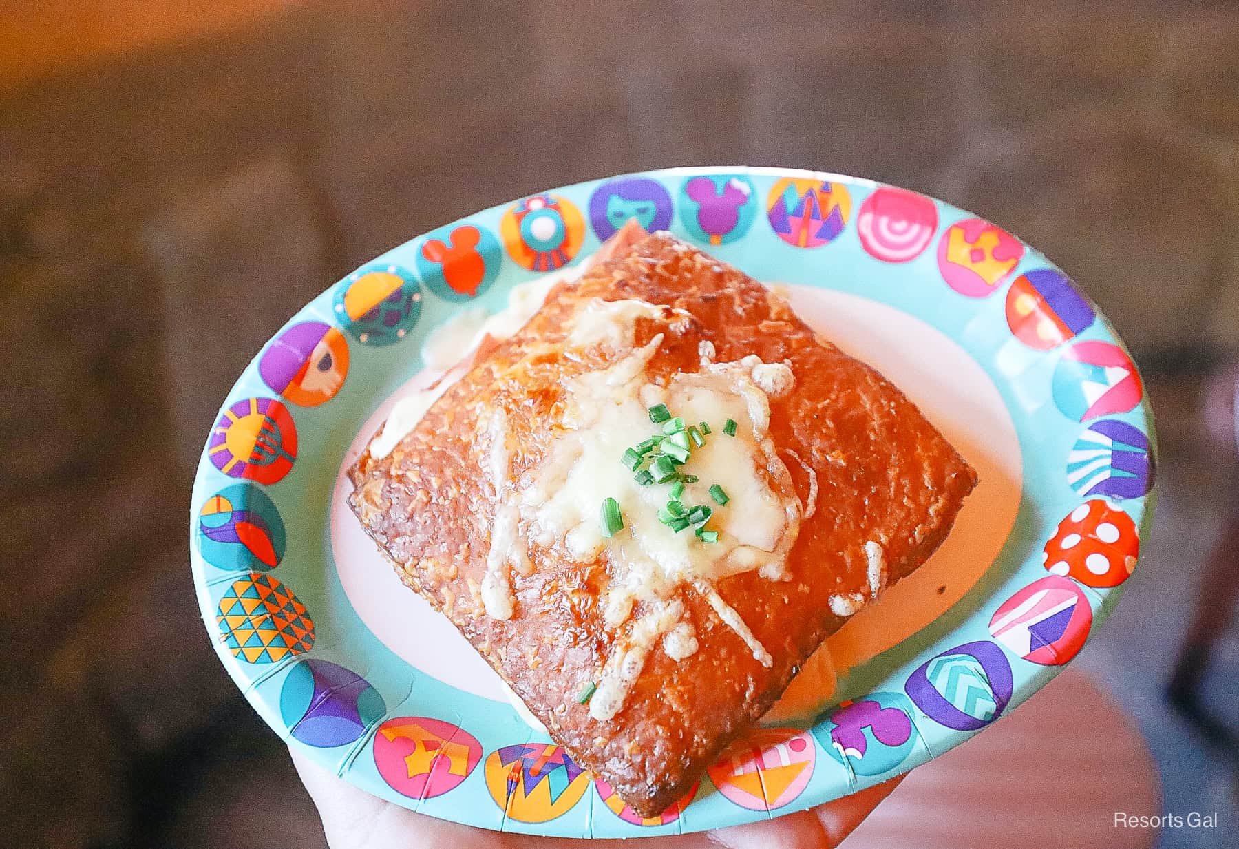 Anyway, back to this meal. I waited approximately 15 minutes just to order my food. Then, there was some sort of mishap with the order ahead of me, which made the wait even longer. The cast member must have felt bad, so when she brought my tray, she mentioned that she threw in the creme brulee croissant to help make up for my wait. This is how I ended up with dinner and dessert.