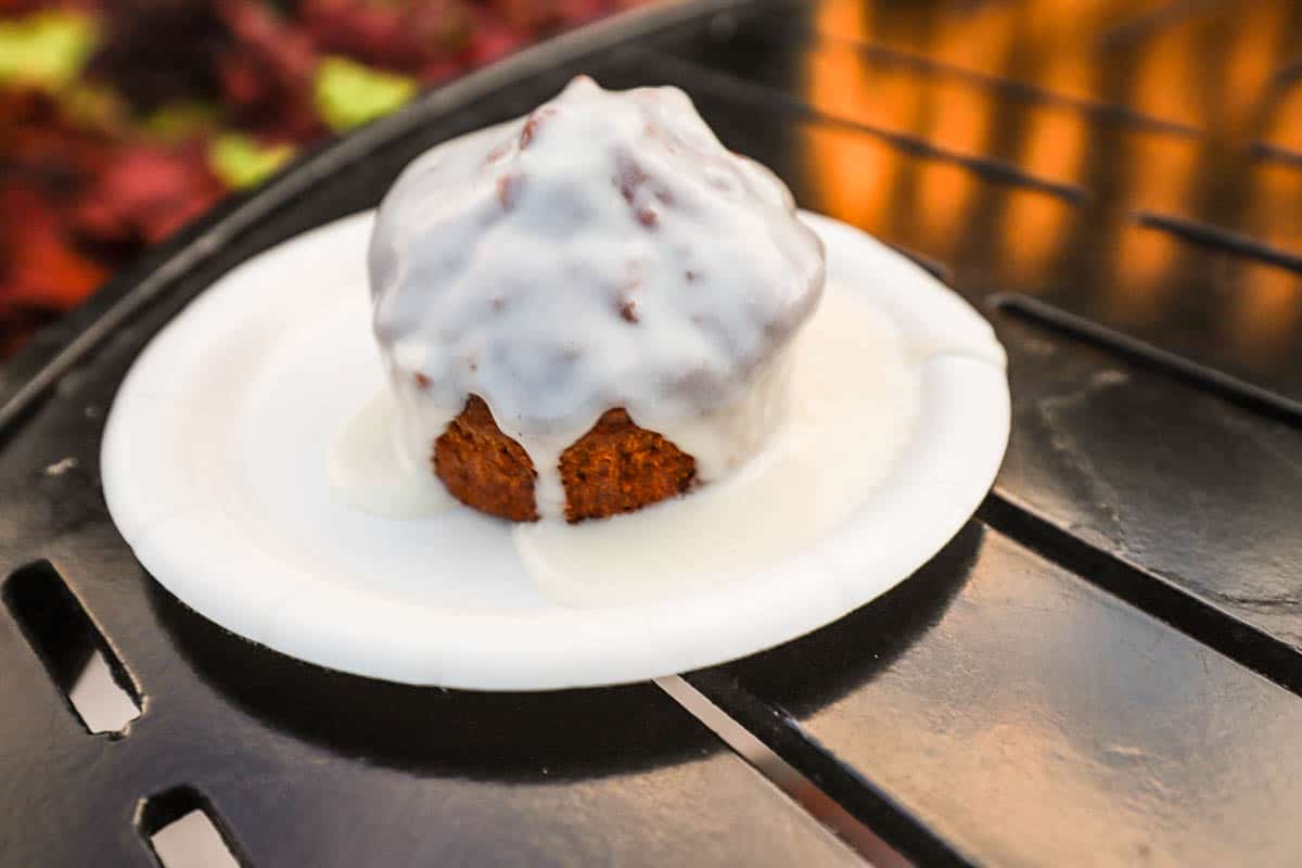 The carrot cake comes in the shape of a cupcake. It’s then saturated with cream cheese icing. However, the icing is more of a sauce. But that’s completely okay. You won’t want to miss this item if you love carrot cake. My other favorite dessert is the pudding cake at the Ireland Marketplace. Both are excellent options!