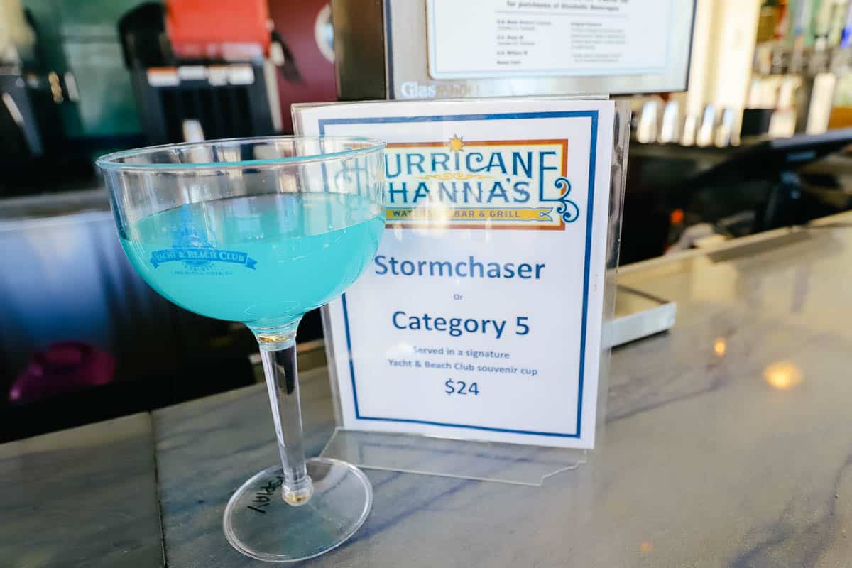 You can preview Hurricane Hanna’s entire drink menu here on Disney’s site. Additionally, the Stormchaser or Category 5 can be served in a signature Yacht and Beach Club souvenir cup. Complimentary water is also available on the far side of the bar.