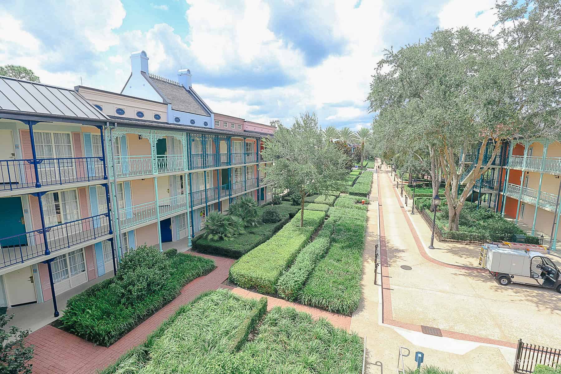 Both Port Orleans French Quarter and Riverside are stunning resorts with landscapes matching their theme. The two resorts sit adjacent to each other. You can walk, boat, or take a bus between them. We won’t get into too many details about Riverside in this review, but suffice it to say that Riverside often requires a good deal of extra walking. Port Orleans French Quarter is considerably smaller and more compact. Pretty much everything at this resort is within a short walk.