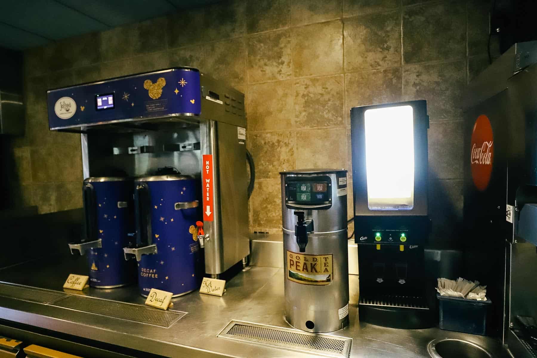Here is the regular and decaf coffee dispenser.