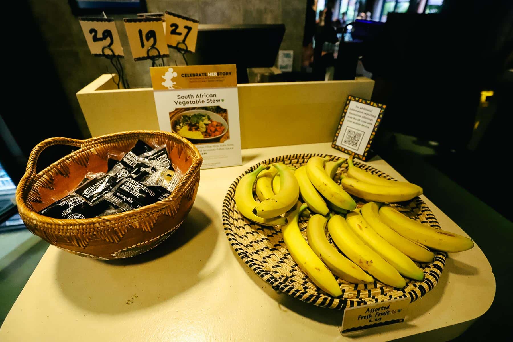 Here are bananas, and I think those were croutons for the salads.