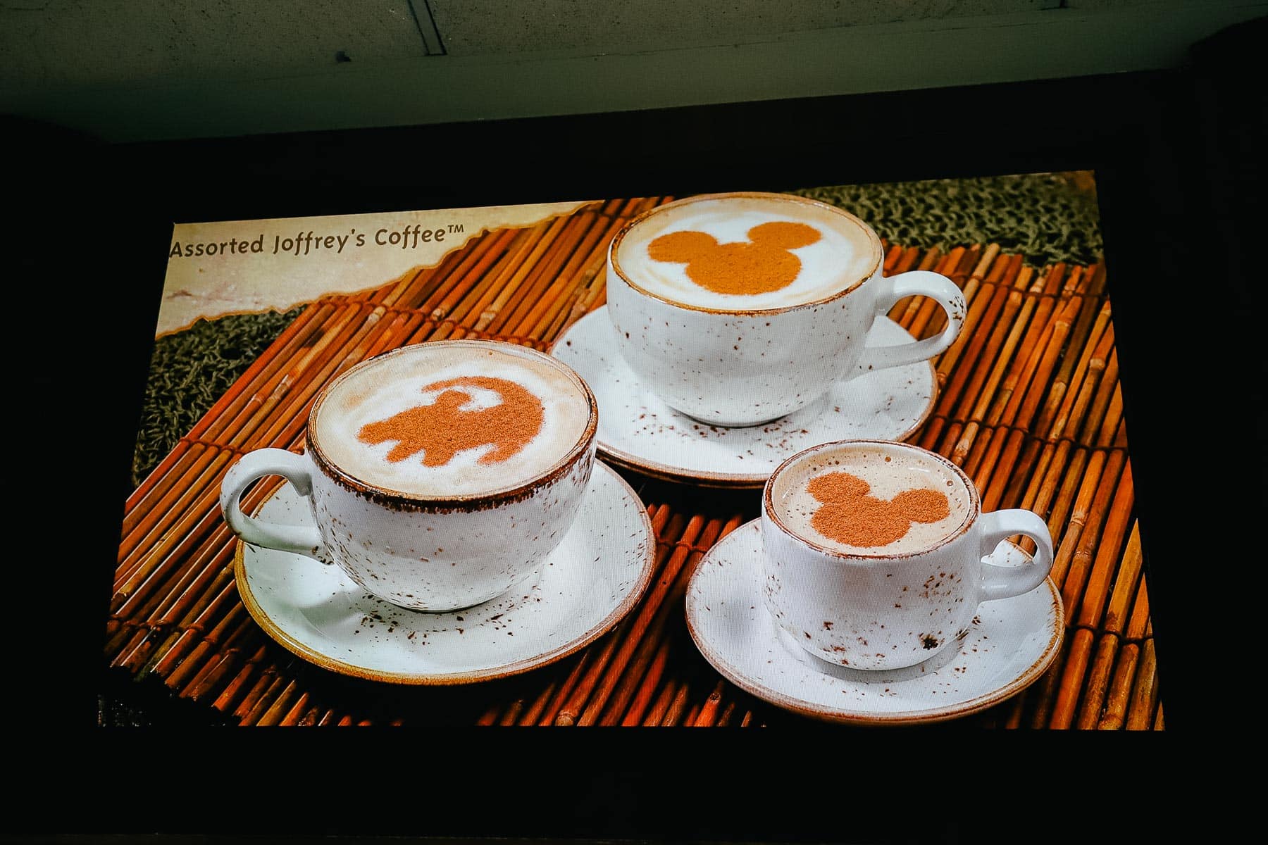 If you order a coffee or mobile order, you’ll receive a cup you can fill at the beverage station. On a recent visit, I ordered a coffee. The cast member at the register told me I would do much better by having someone freshly prepare a cup. So I asked if I could have a cappuccino, and they obliged. When I returned to take a few updated menu photos, I noticed this sign that shows the character creations on top of the coffee. But there still isn’t a formal specialty coffee menu posted in The Mara or online.