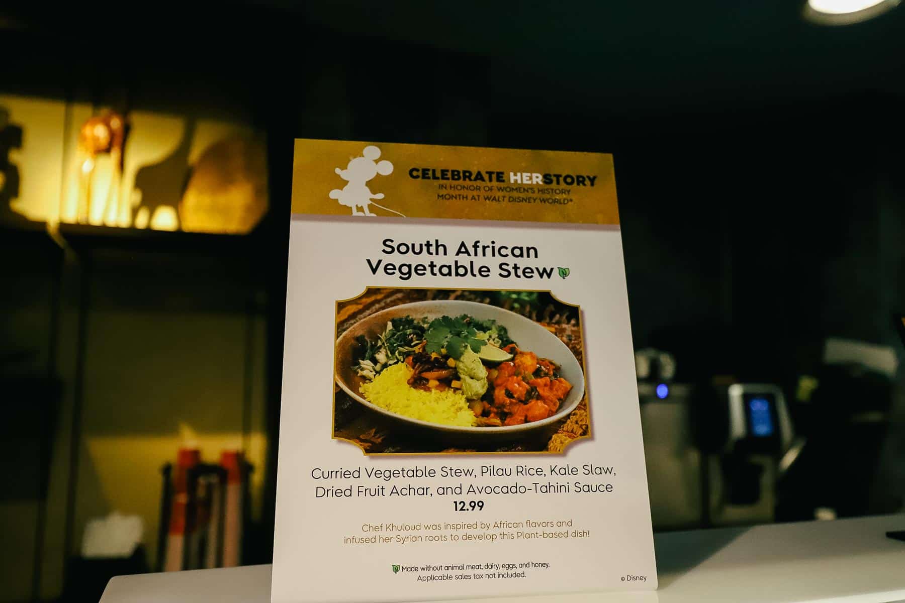 Occasionally, you might encounter a poster at the restaurant that lists special menu items. For example, on this visit, a South African Vegetable Stew was available in honor of Women’s History Month.
