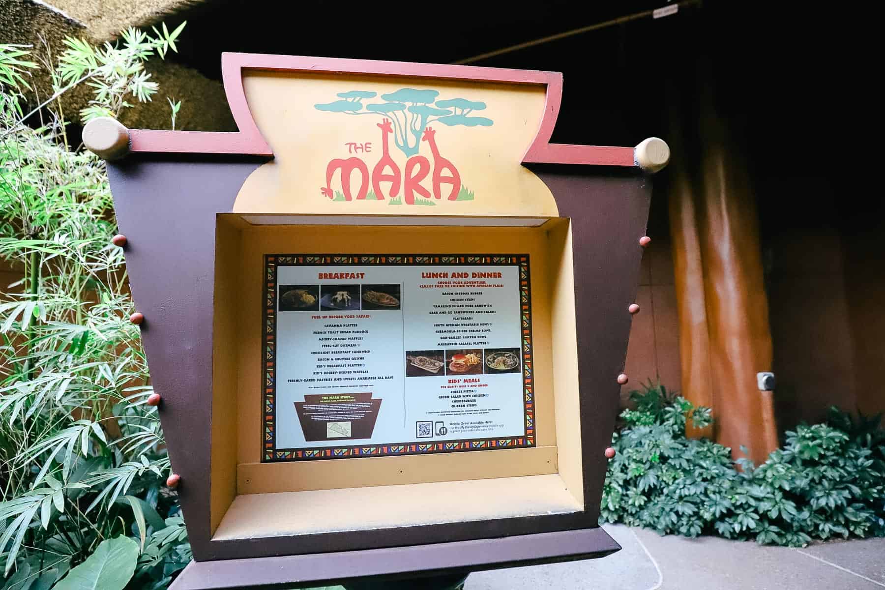 The Mara has a menu posted outside its entrance.