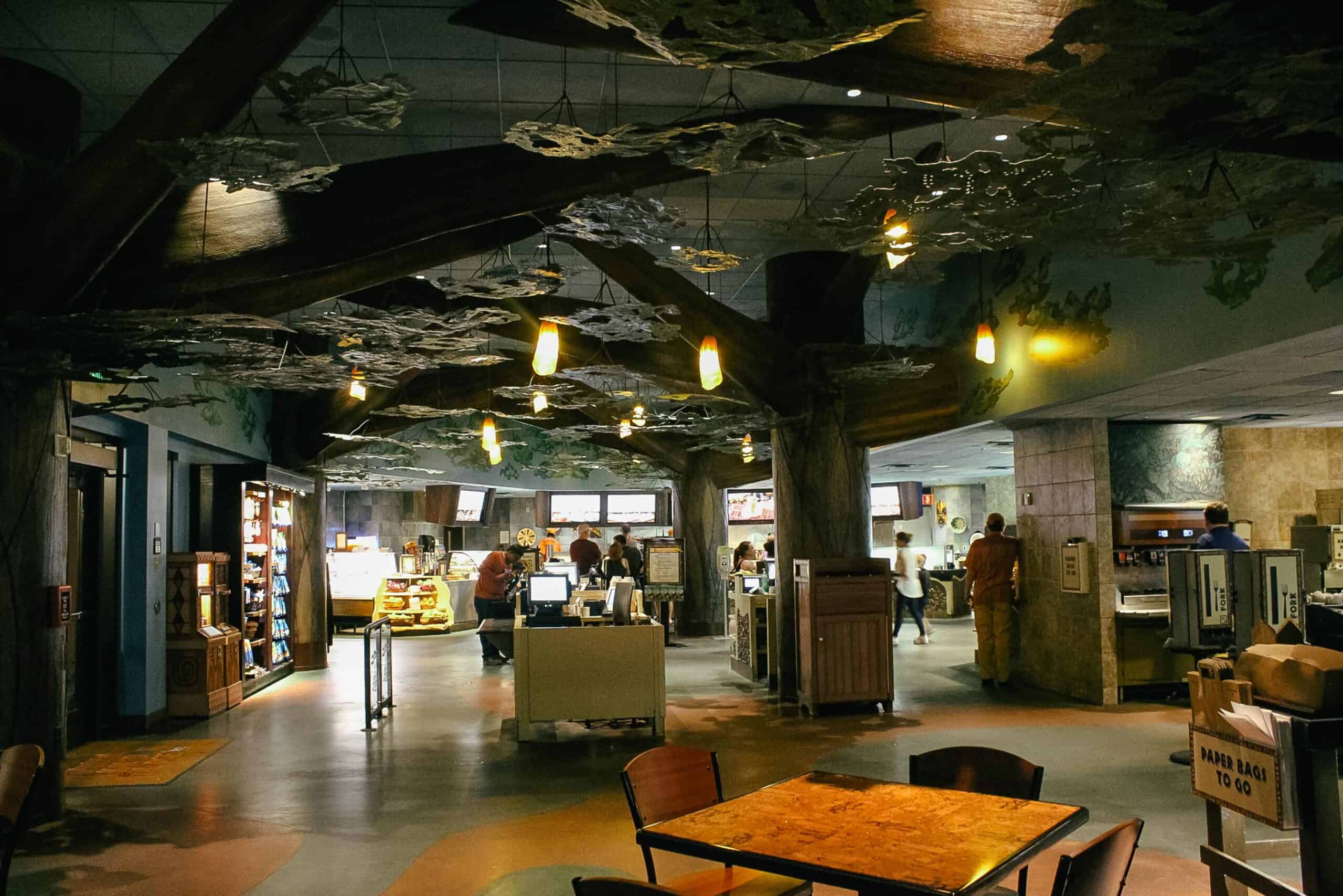 To locate The Mara, you’ll want to take the stairs or elevator to the lower level of Jambo House. After you’ve made it downstairs, a large set of doors between Jiko and Boma, Flavors of Africa, leads outside. After you walk out, a covered walkway leads straight to The Mara. It will be down on your left. This is also where you’ll find the feature pool, arcade, and one of two public animal viewing areas. Below, we’ll look at a few other specifics for The Mara. We’ll also preview the menu and other items you can expect to find during your stay.