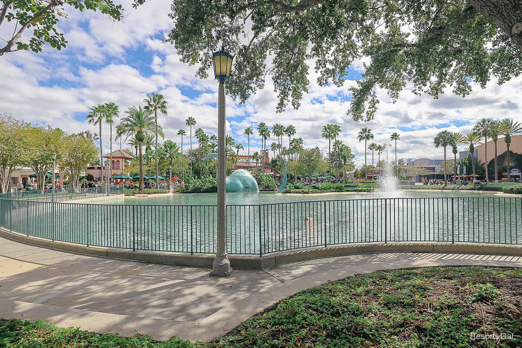 Echo Lake is on the front left side of the park after you enter. You’ll take the first left off of Hollywood Boulevard and run straight into the lake as shown in the picture below. Ariel meets to the left of the Gertie the dinosaur, who’s sitting on the back side of the lake.