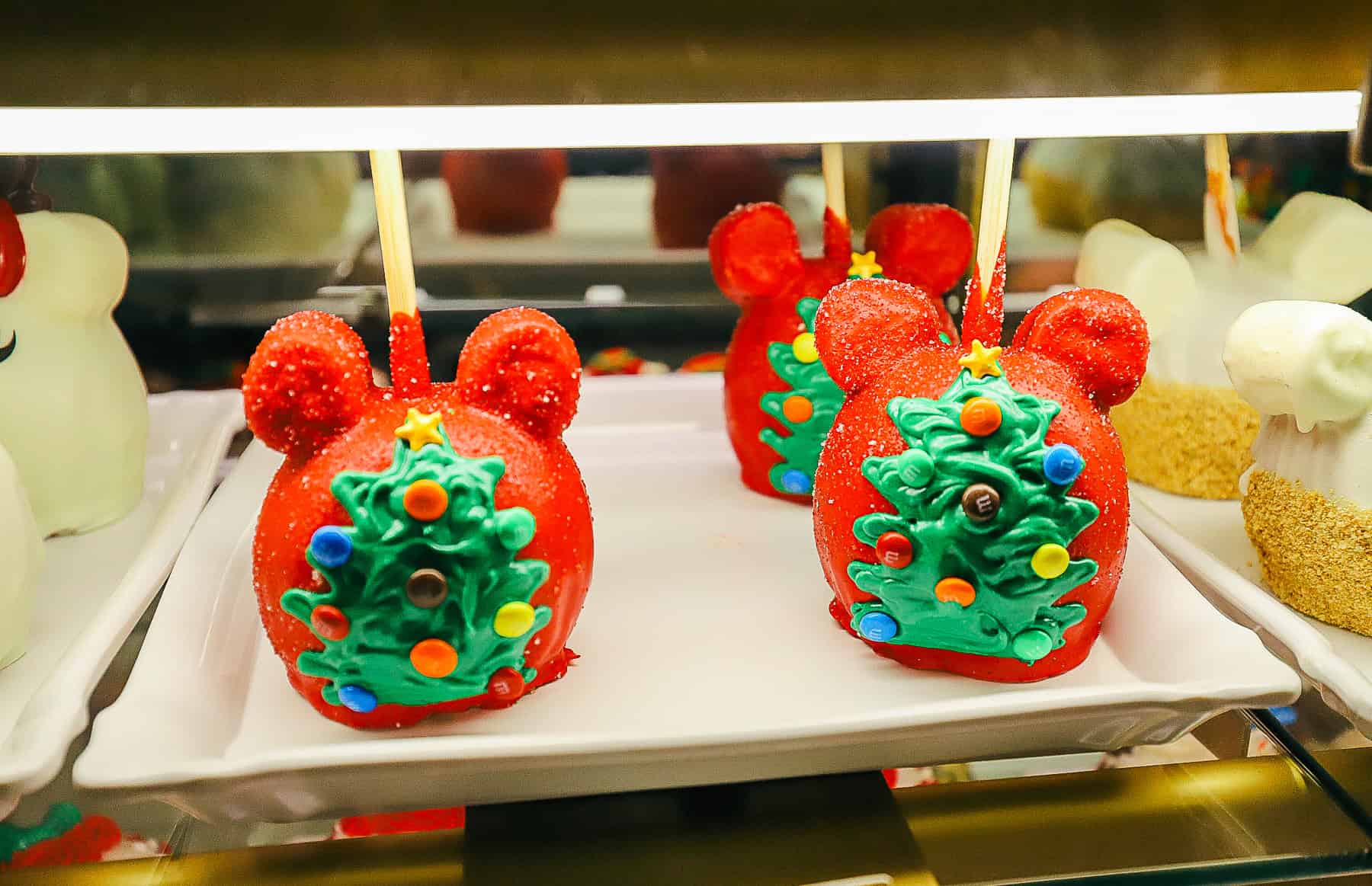 The Mickey Holiday Tree Caramel Apple with M&M’s Milk Chocolate Minis for $14.49 is another option. It’s a Granny Smith apple with marshmallow ears dipped in caramel and colored chocolate coating with M&M’s milk chocolate minis and a candy star.