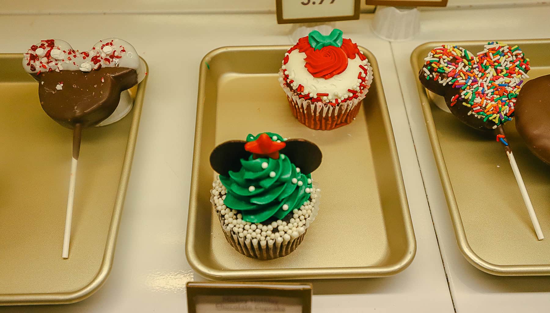 - Mickey Holiday Vanilla Cupcake $5.99: Vanilla Cupcake with buttercream frosting and sprinkles.