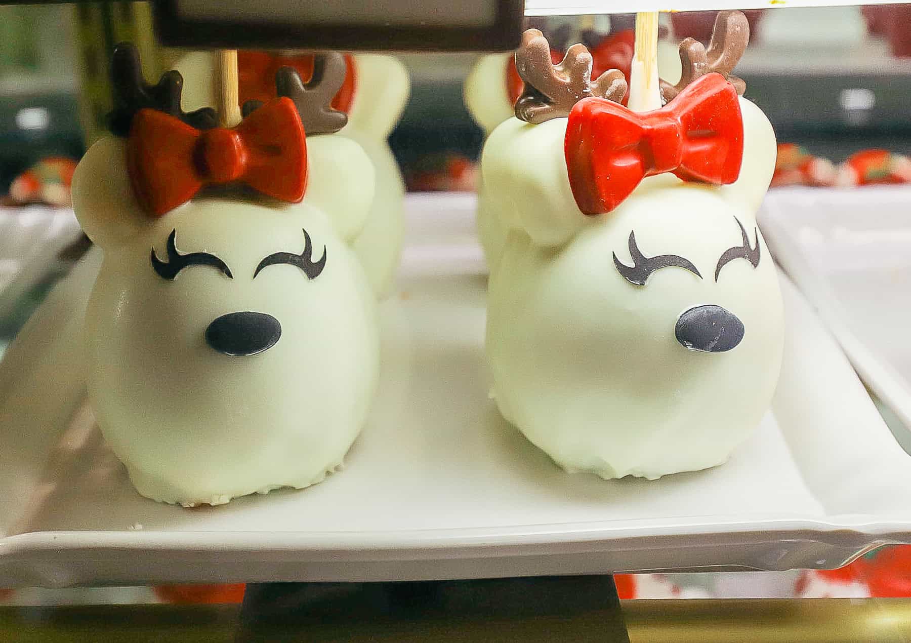 I’m mentioning this tip for two reasons. First, if you look at the regular menu in the app, you can’t see the photos of the items. It’s just a line item list. The mobile order section allows you to actually see a photo of the item you’re selecting. Secondly, the Confectionery is sponsored by Mars Chocolate. So most of the treats at the Confectionery feature some sort of candy made by Mars. If you prefer something plain (without candy), you can find unique options at Big Top Souvenirs. For example, this Minnie Mouse Reindeer Apple is available at Big Top Souvenirs.