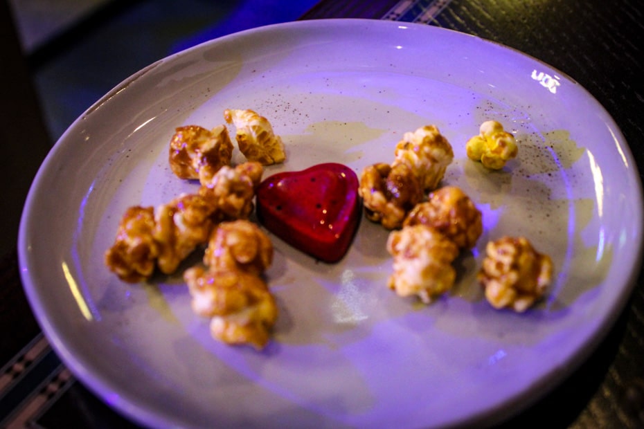 The server will then remove the cracked maple popcorn and chocolate heart from the box and leave them with you for enjoyment. There isn’t much substance to the few bites, but it is a fun moment during the meal.