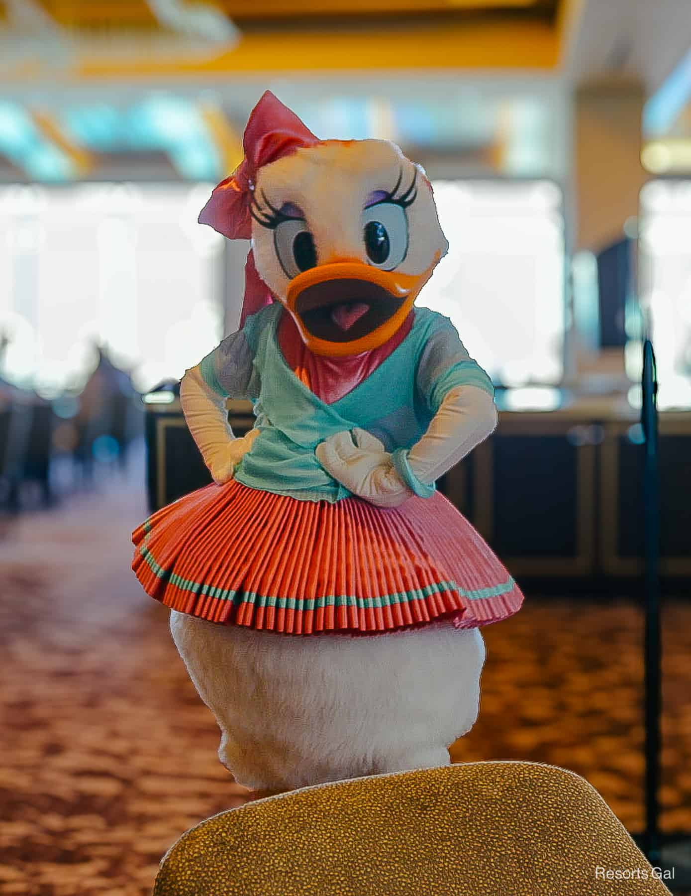 First, we have Daisy Duck as she twirls around the room, gracefully posing for photos. It appears that most of her time is spent on the dance floor these days. So don’t be surprised when you find her dancing full-time at Hollywood Studios.