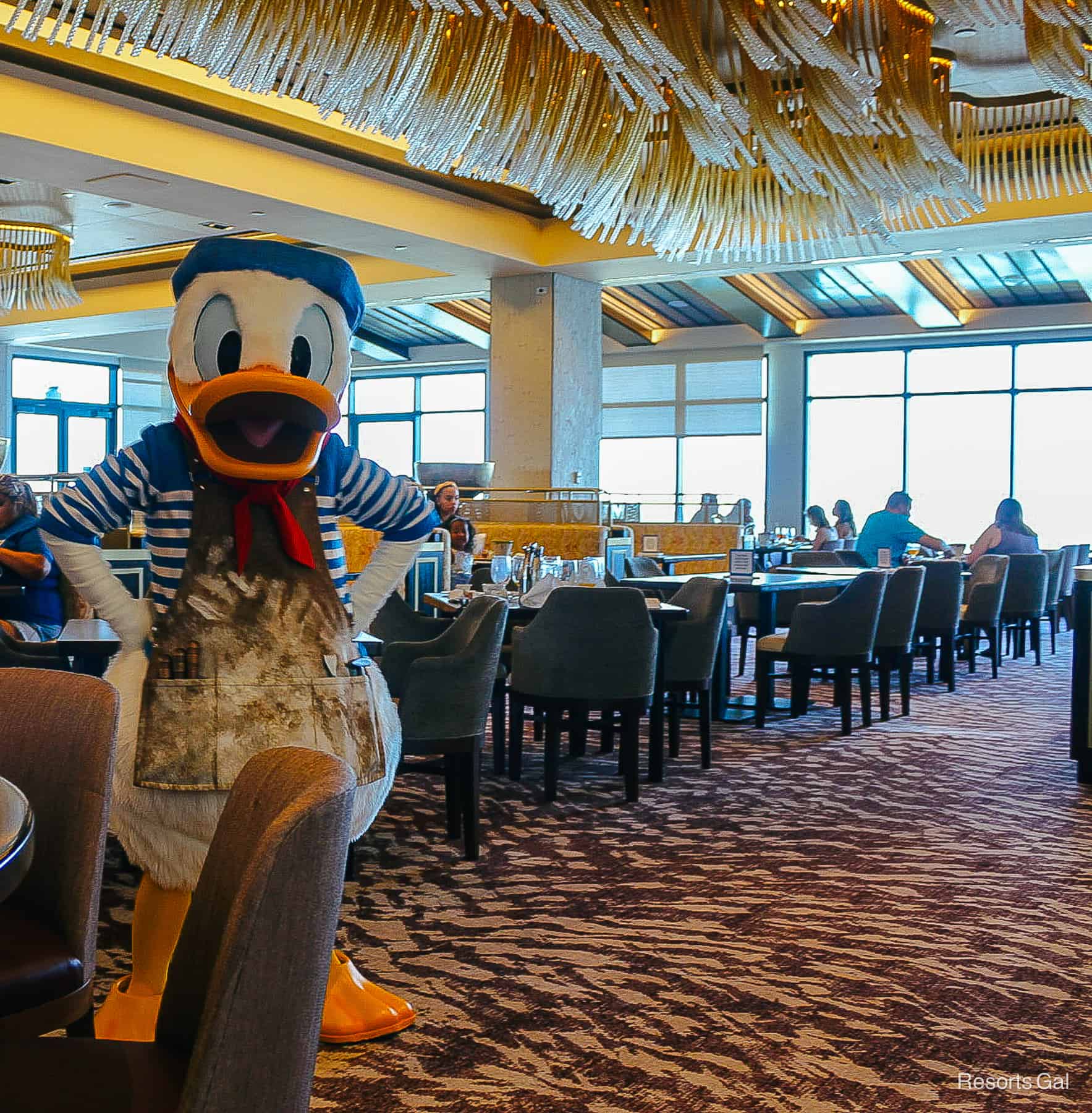 If you plan a meal at Topolino’s Terrace, you’ll want to know that characters are only available at breakfast. The restaurant transitions to signature dining in the evening. This rooftop restaurant is a wonderful place to enjoy fine dining with stunning sunset views.