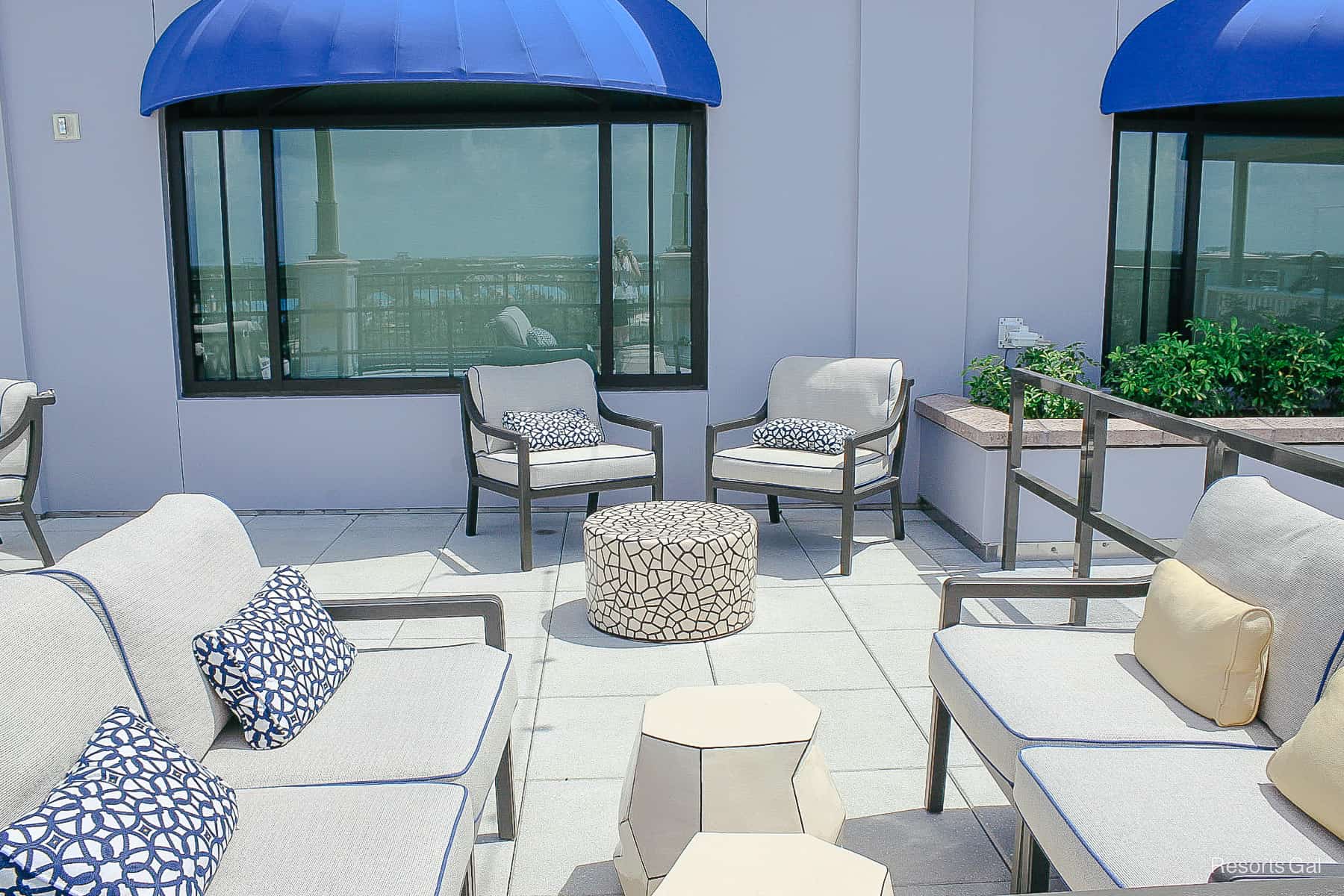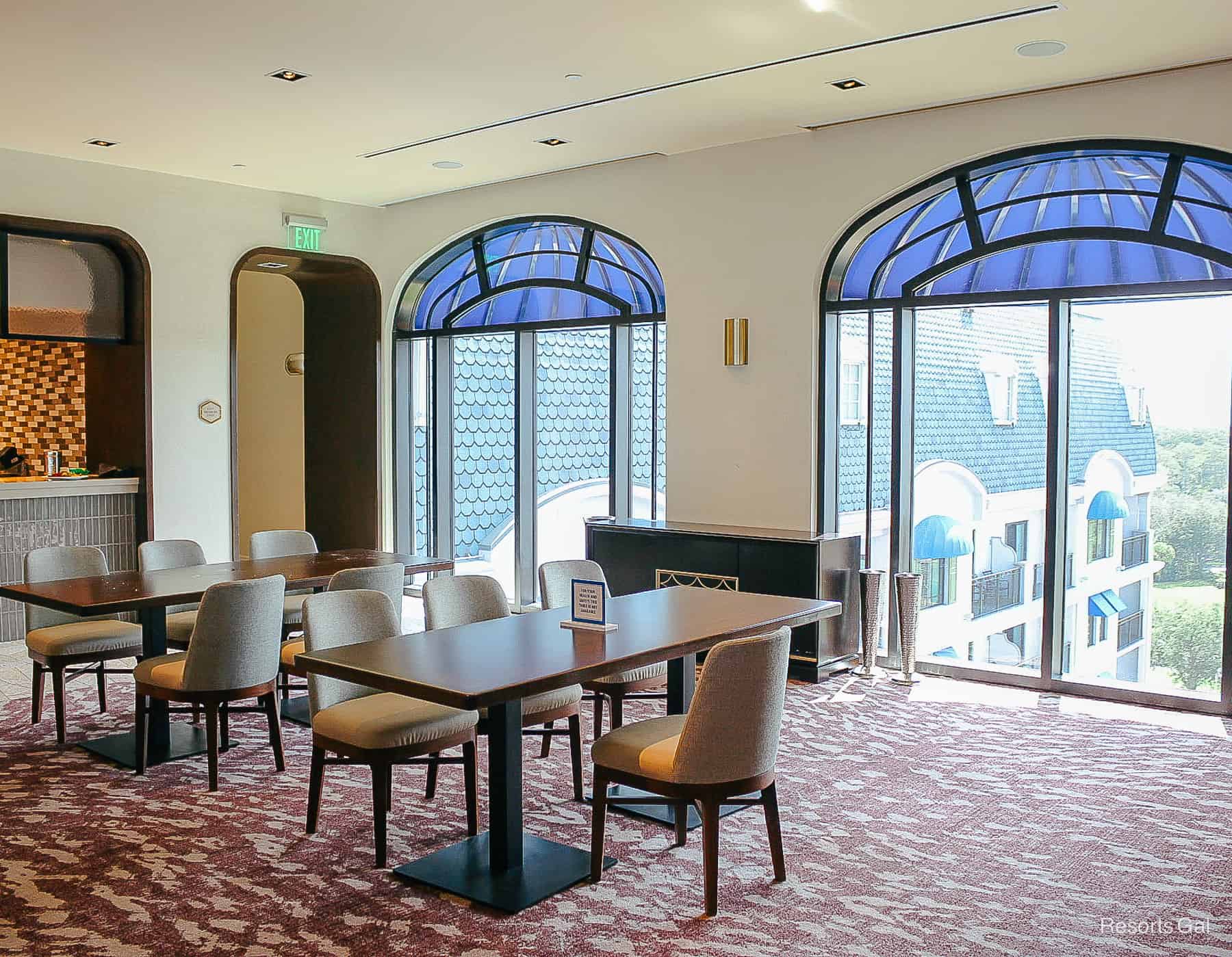 Topolino’s Terrace is located on the resort’s 10th floor. When you enter the resort’s front entrance, you’ll make your way past the gift shop and cafe. You’ll continue down the hallway until you reach the elevators.