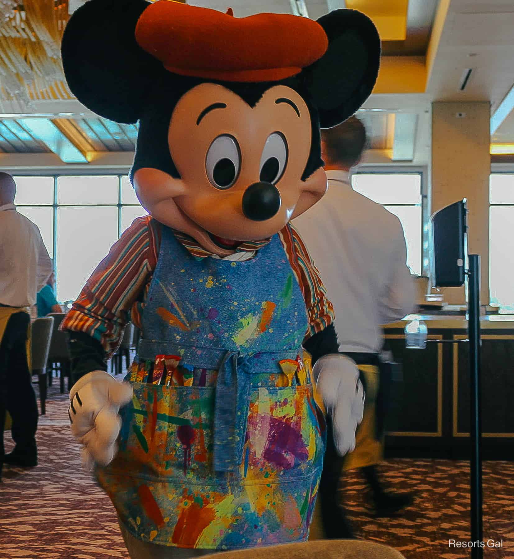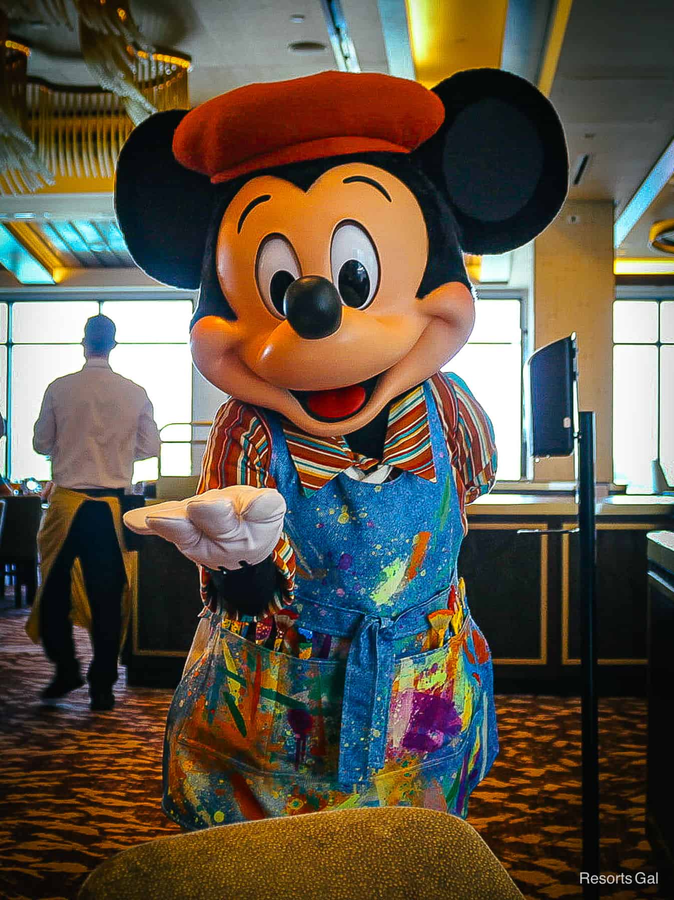 Lastly, we’ll discuss the characters at Topolino’s Breakfast a la Art. Four classic characters greet guests wearing outfits expressing their favorite artistic passions. The character interactions at this meal were endearing!
