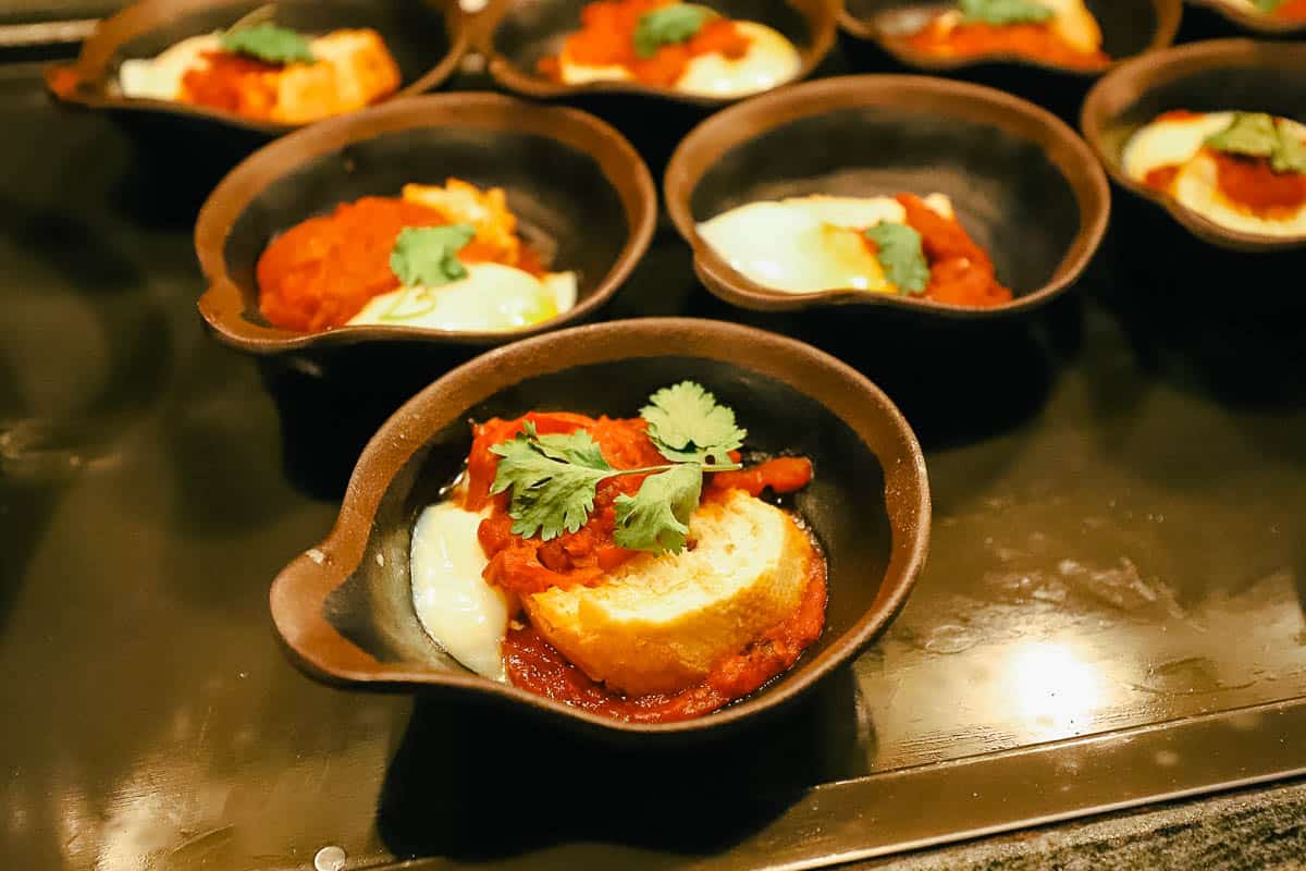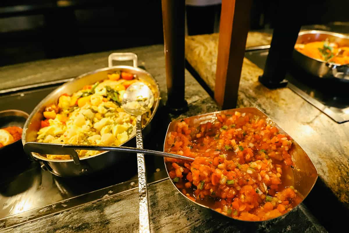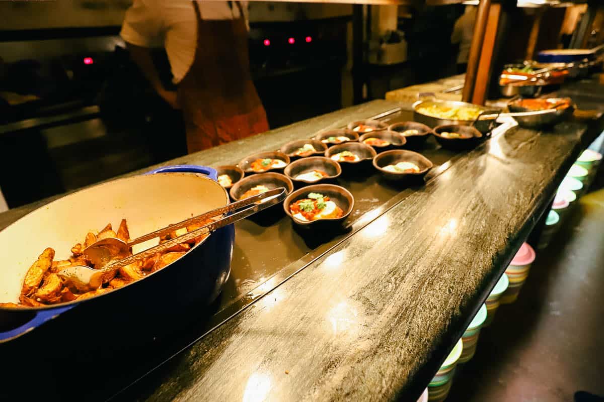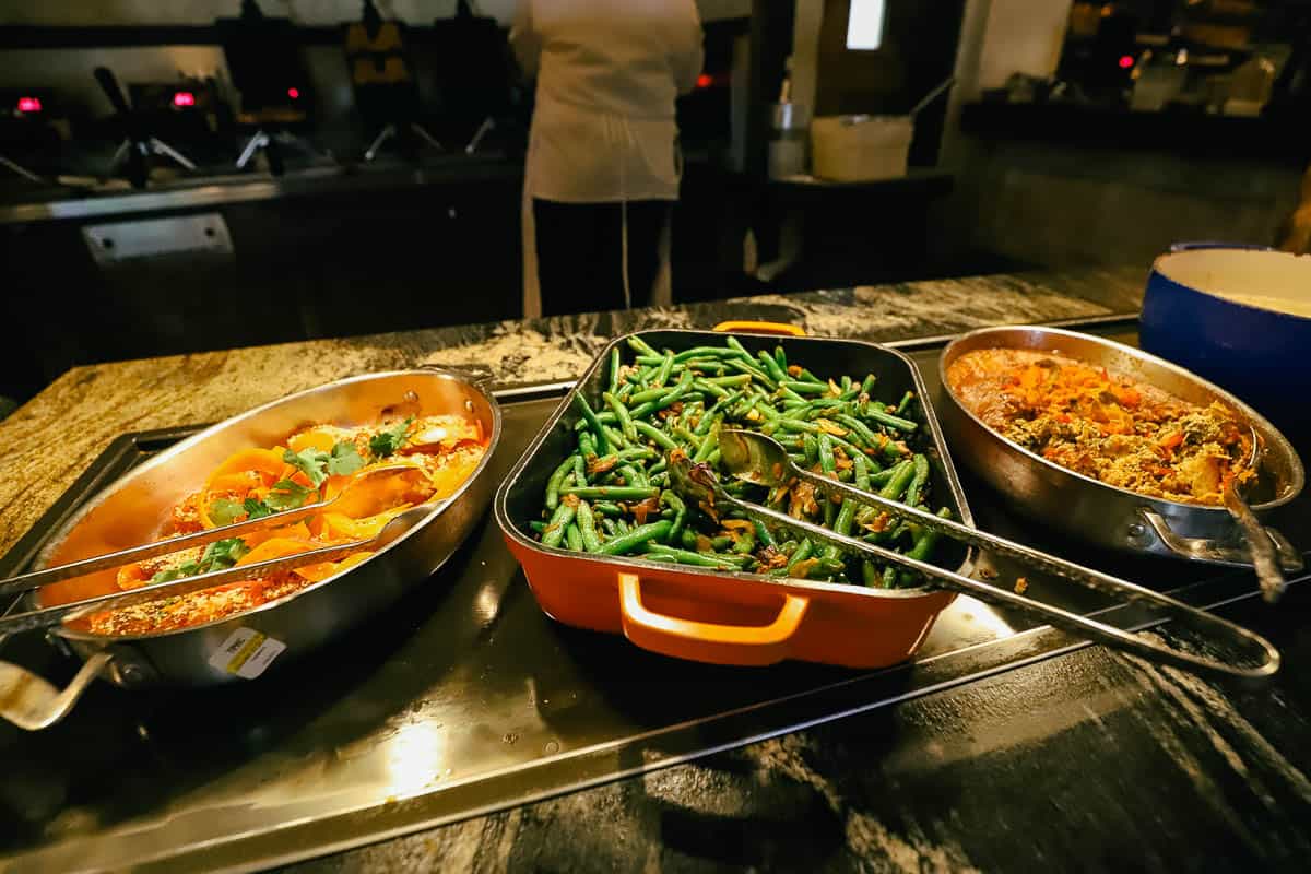 Aside from the juice, standard beverages are complimentary with the buffet, so we ordered a soda and a coffee. In addition to the juice, several non-alcoholic drinks and specialty cocktails are available. You can preview the menu with prices here on Disney’s site.