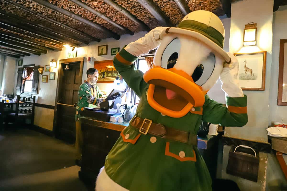So what better way to kick off your adventure than by enjoying a leisurely breakfast (with characters) at Tusker House Restaurant? On our last visit to Animal Kingdom, we did just that! In this article, we visit Tusker House at Disney’s Animal Kingdom for a review of breakfast with Safari Donald and Friends.