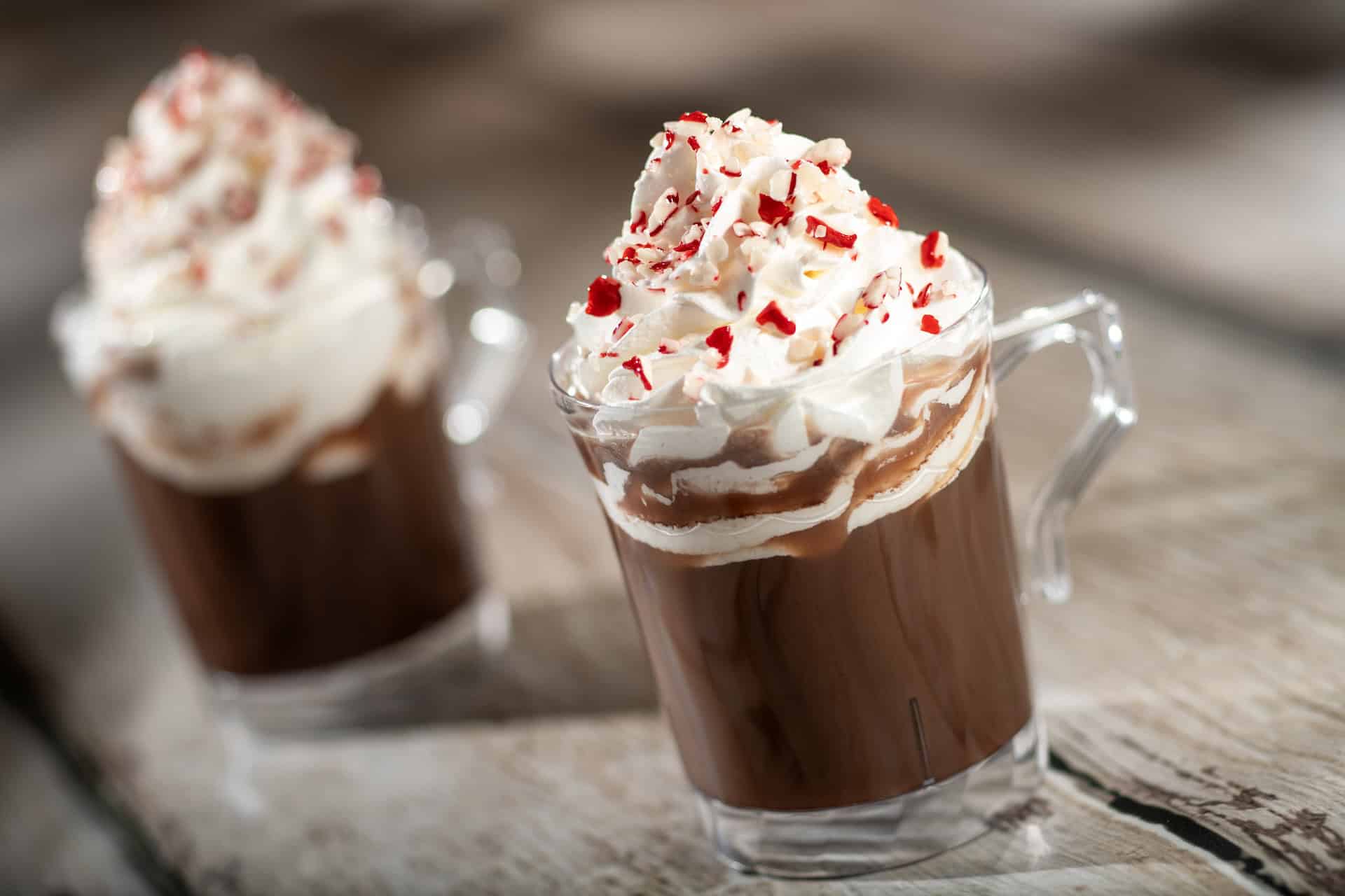 - Frozen Caramel Hot Cocoa featuring TWIX cookie bar pieces and Whipped Cream (Non-alcoholic)