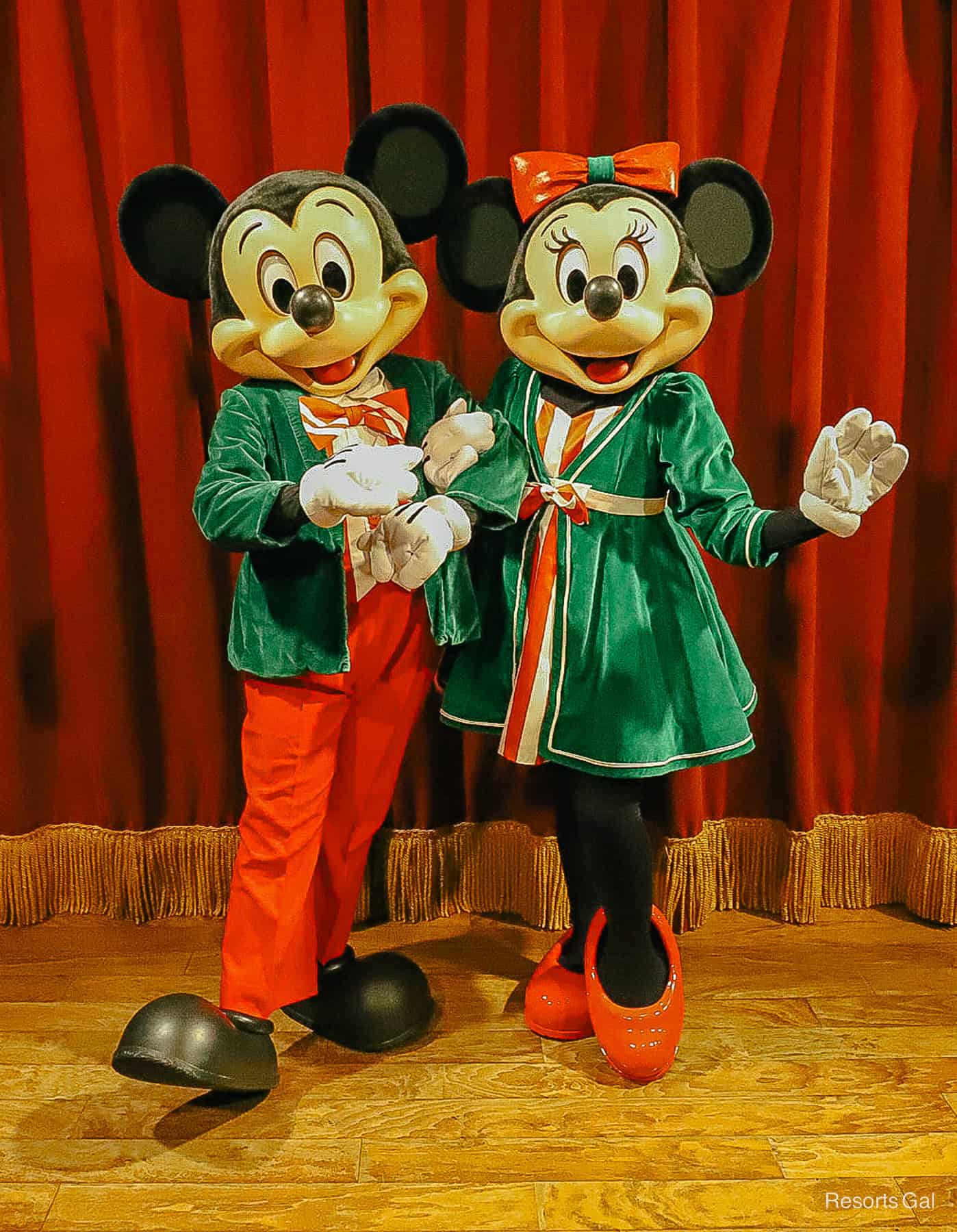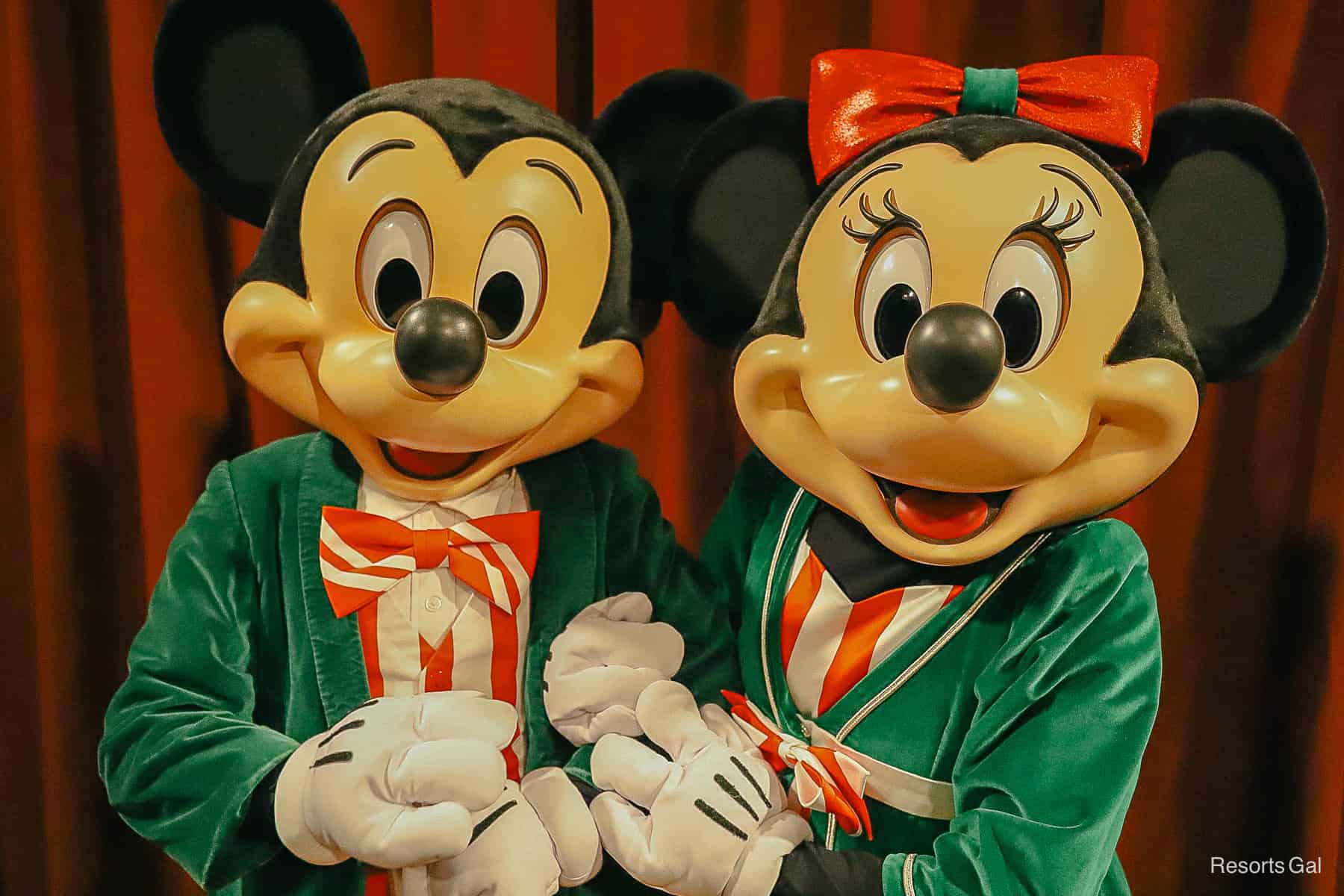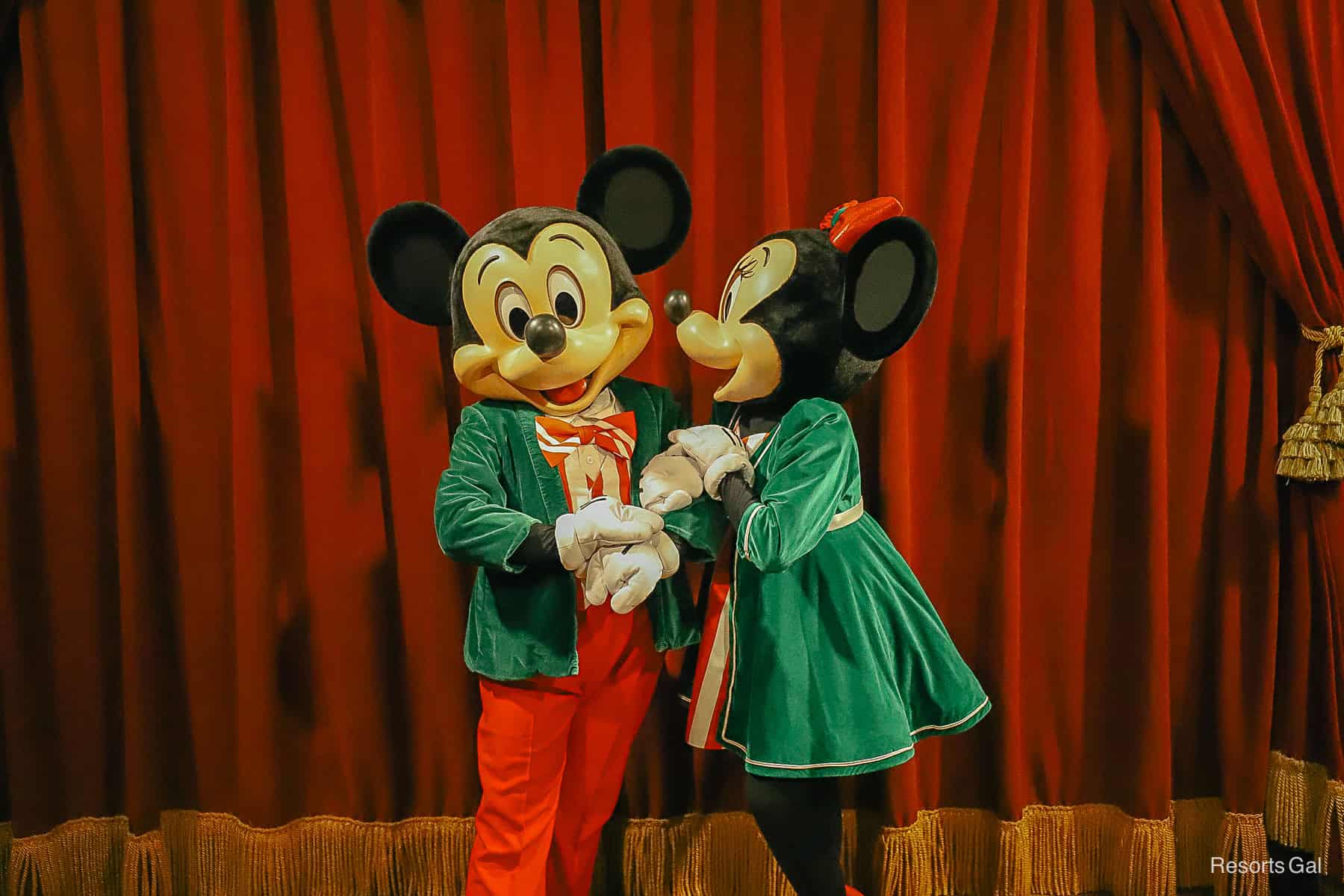 Mickey and Minnie Mouse are meeting together during Mickey’s Very Merry Christmas Party for the first time in a long time. The pair meets in Town Square Theater near the entrance of Magic Kingdom Park. They wear matching holiday outfits at this location. You may remember that they also met together here during the Halloween Party.