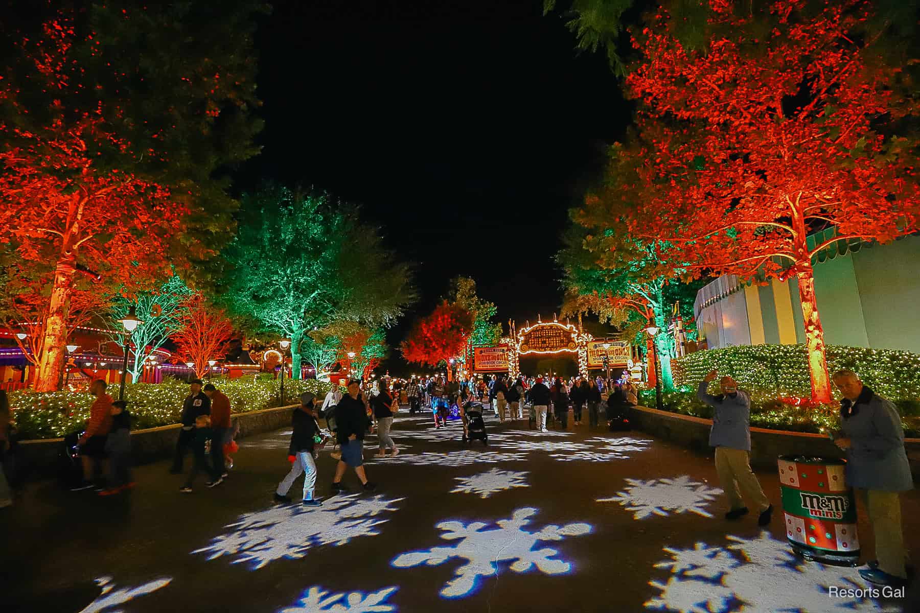 Plus, you’ll want to walk around and see all of the stunning holiday decorations, lights, and projections.