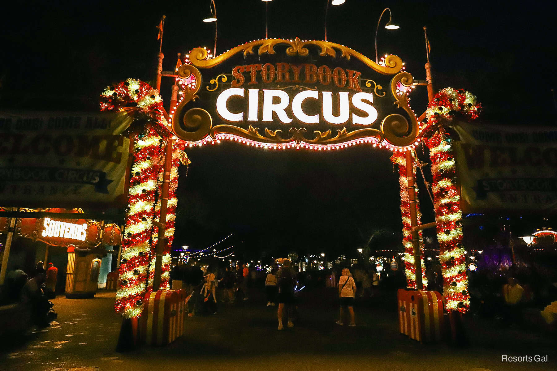 We started our evening at Pete’s Silly Sideshow, which is toward the back of Storybook Circus. This is where Donald and Daisy Duck have a holiday meet-and-greet with Scrooge. Expect a long line, but the photo opportunity is one-of-a-kind.