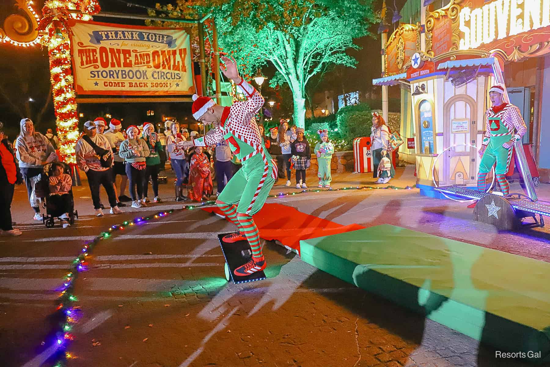 A group of performers dressed like elves entertained guests in front of Big Top Souvenirs throughout the evening.