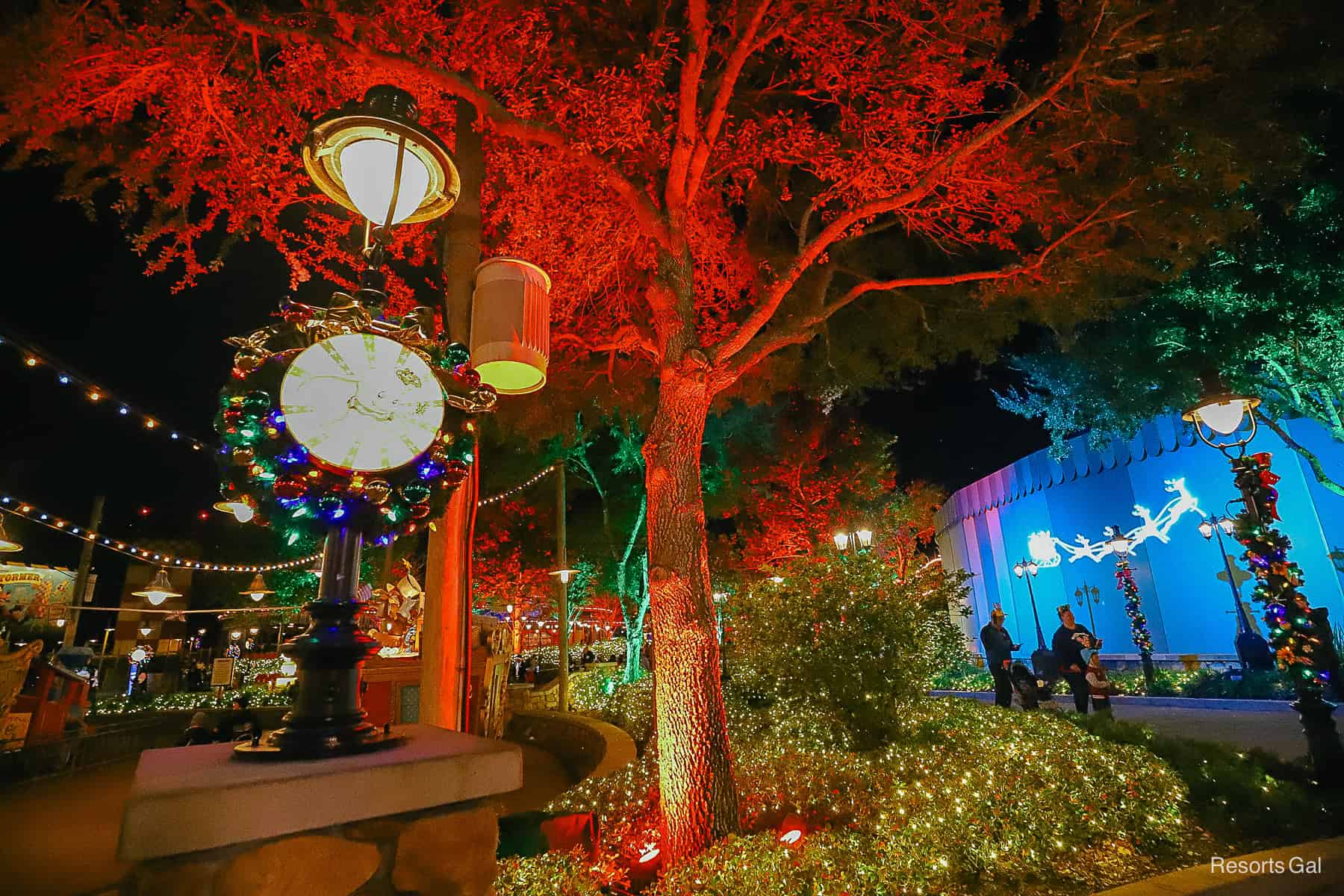 A cast member told us that Santa comes out at 6:00 p.m. to meet guests ahead of the start of the Christmas Party. So I took a few of these photos ahead of time.