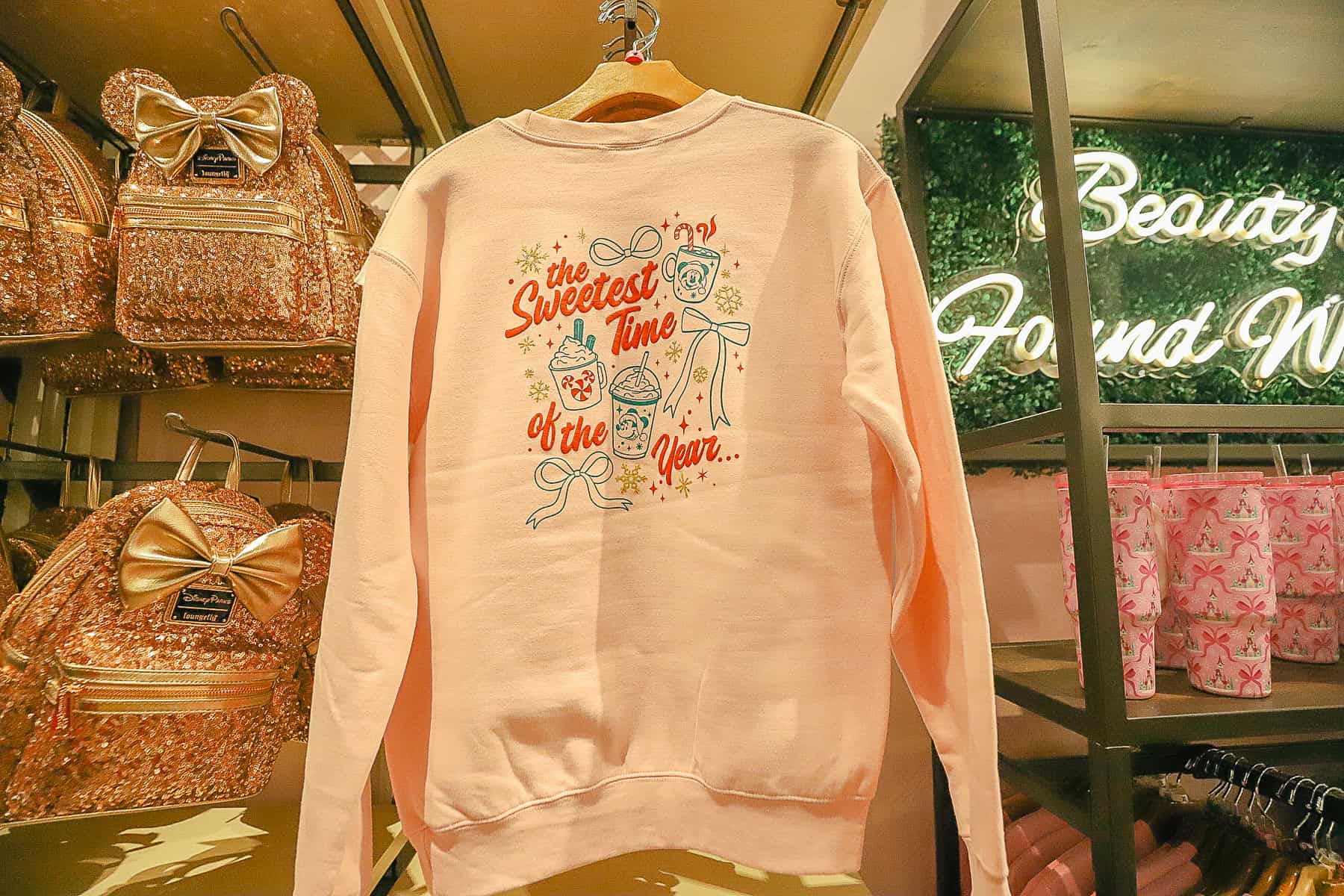 We also saw this soft pink sweatshirt at Tren-D featuring a bow on the front with the Walt Disney World logo and Mickey Mouse wearing a Santa hat.