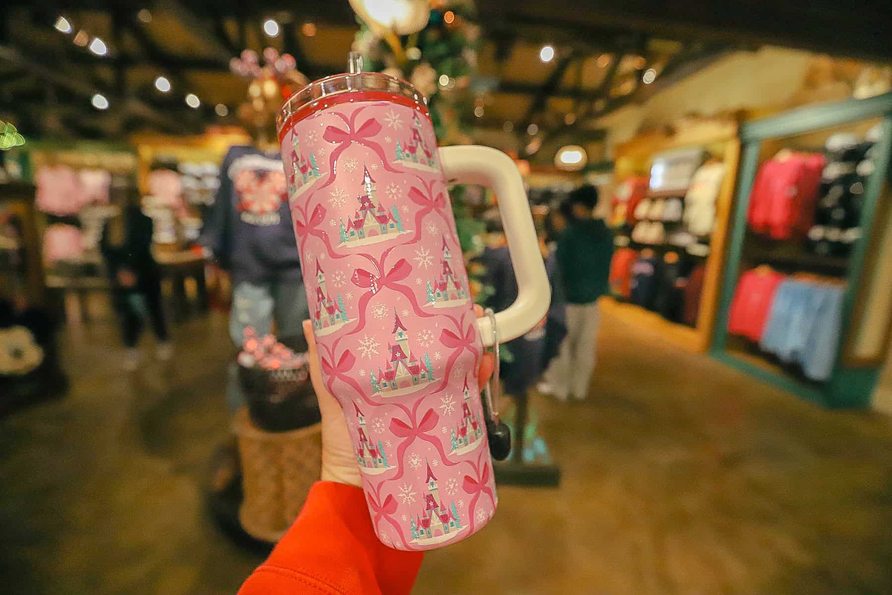 Pink Castle Tumblers with Bows and Mickey Snowflakes ($44.99)