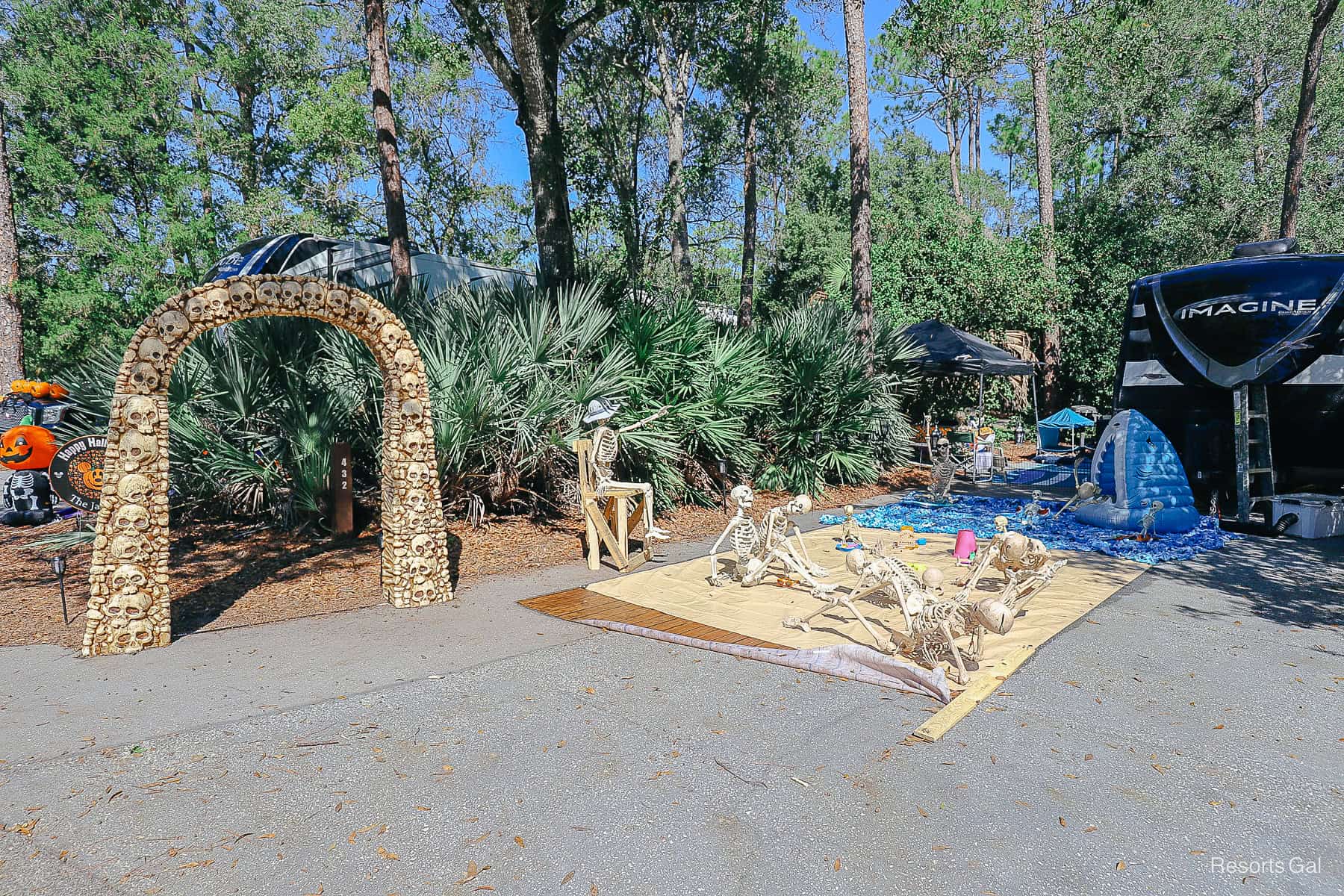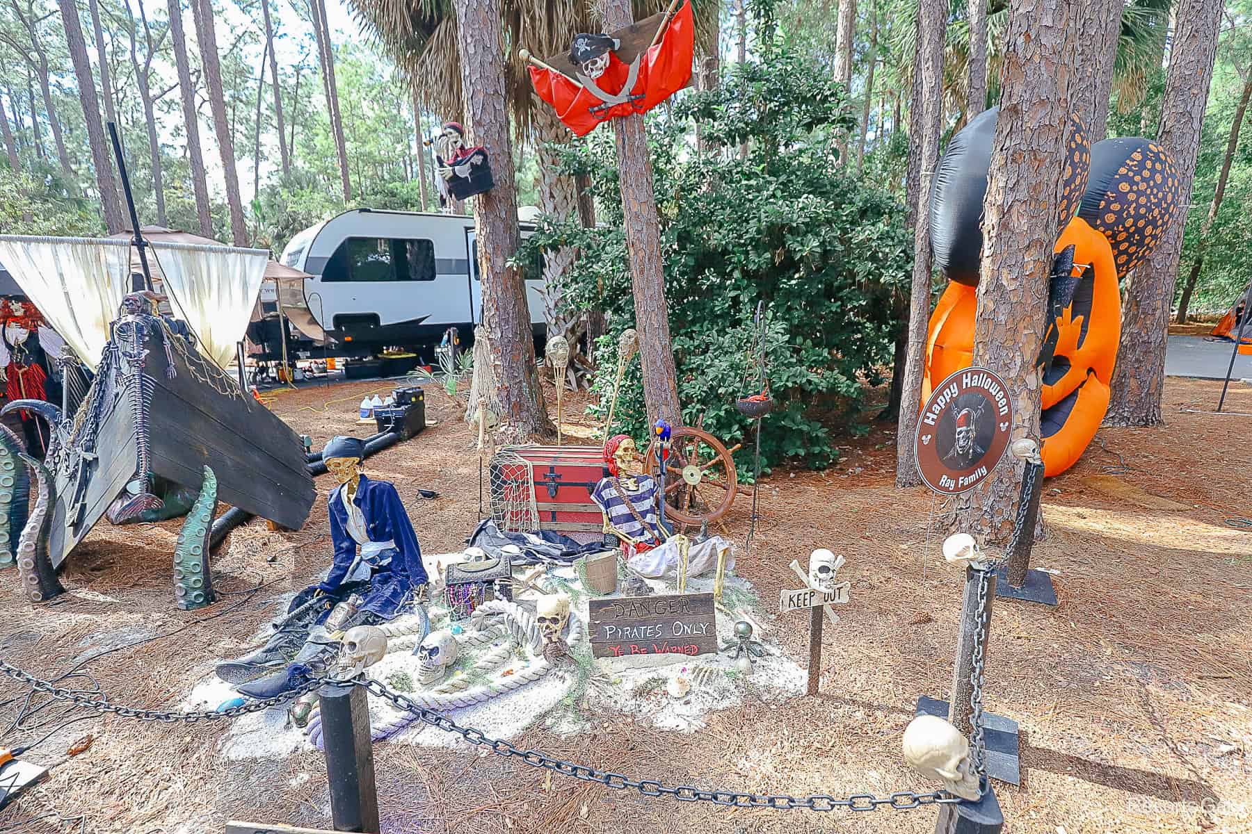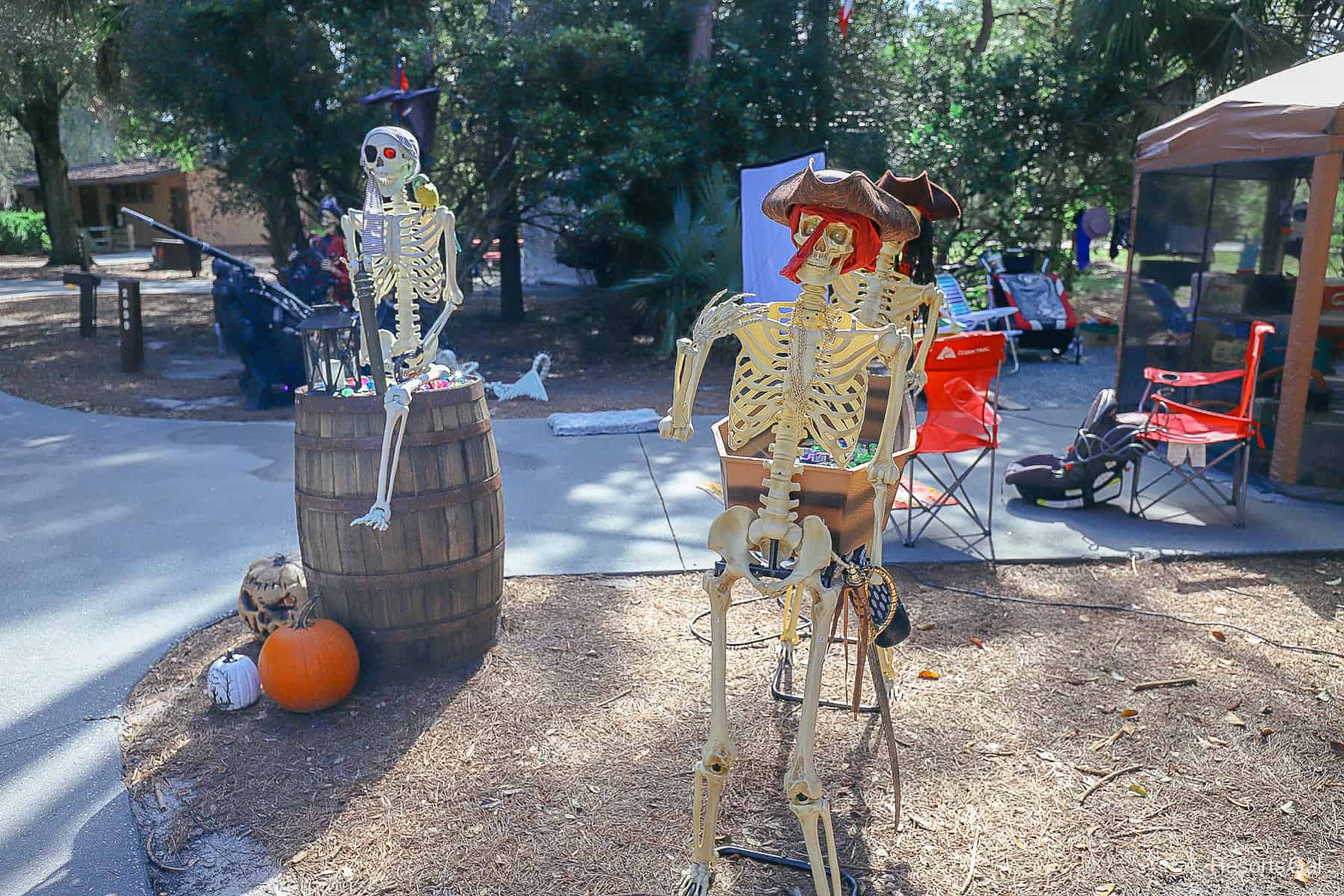 This year, some of the standouts were a miniature Halloween village, a saloon full of skeletons, and a pirate display that looked more fun than a round of drinks at the Beak and Barrel. Below, I’ve created a photo post sharing many of the campsites that we saw today.