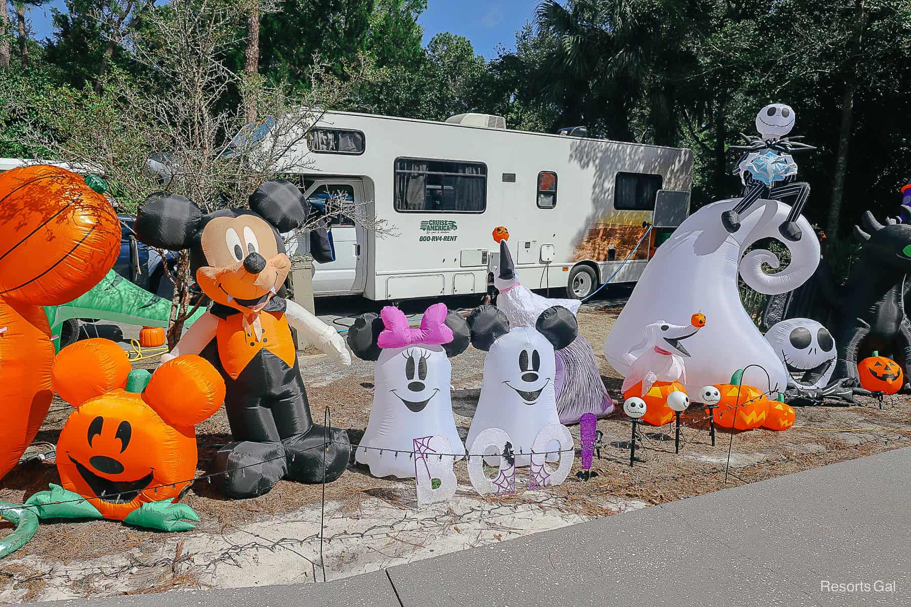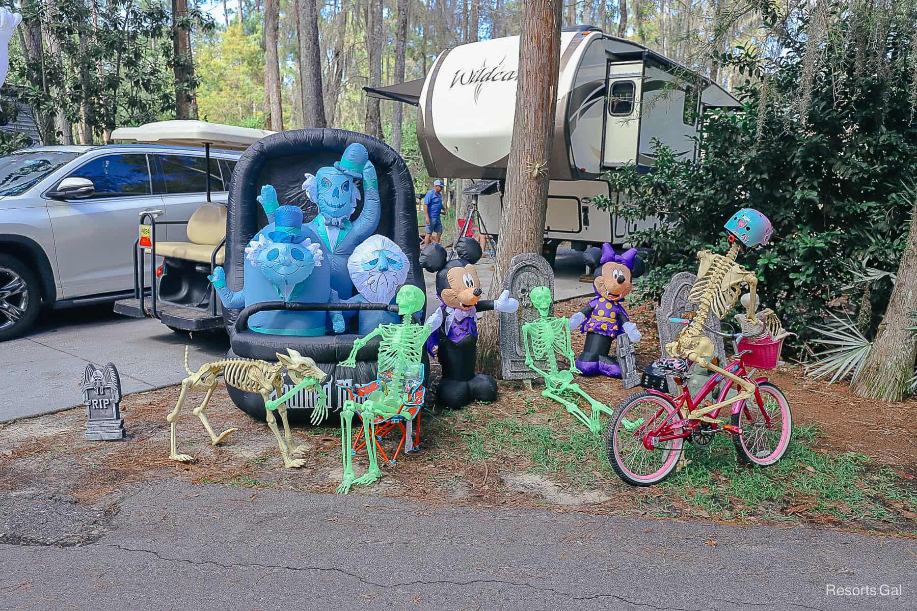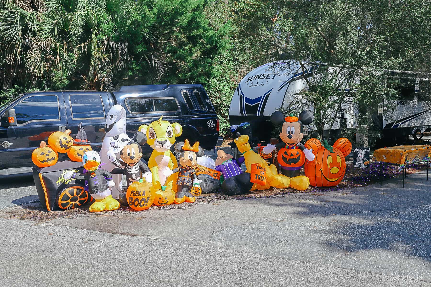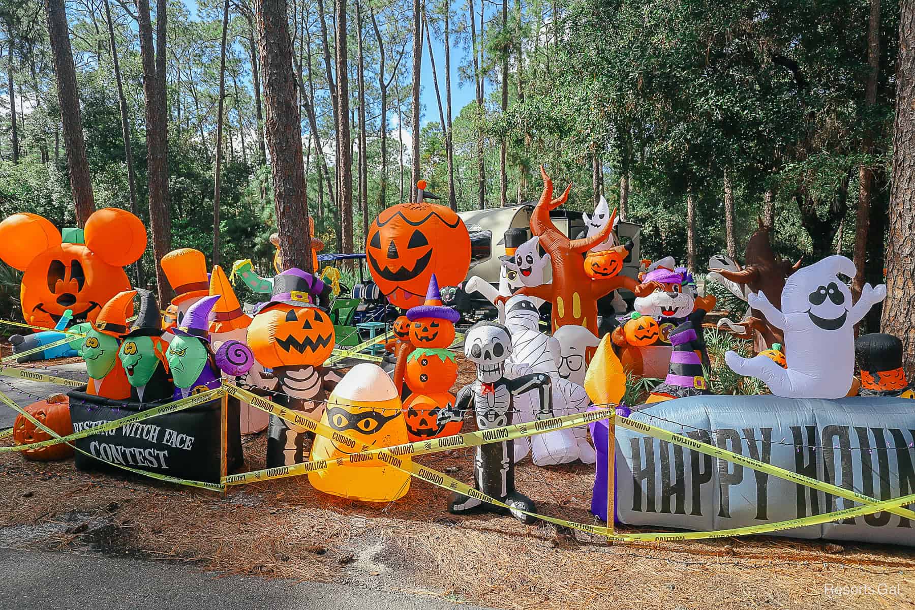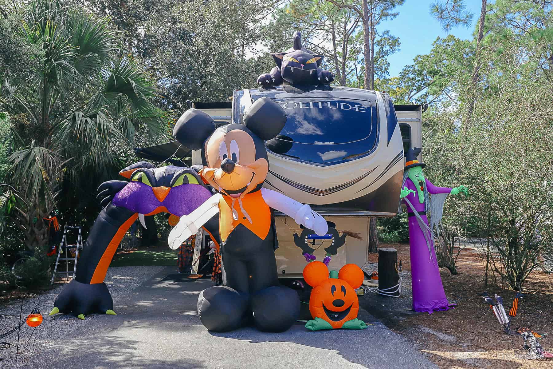 Every year, guests of Disney’s Fort Wilderness Resort and Campground go all out in a competition to be the best-dressed campsite for Halloween. Throughout each loop, you’ll find anything from subtle Halloween decor to the entire inflatable department from the nearest Spirit Halloween. Some sites are family-friendly while others feature clowns. I can promise that you’ll find lots of Hitchhiking Ghosts, Mickey and Minnie Mouse in a variety of costumes, and Jack Skellington galore.