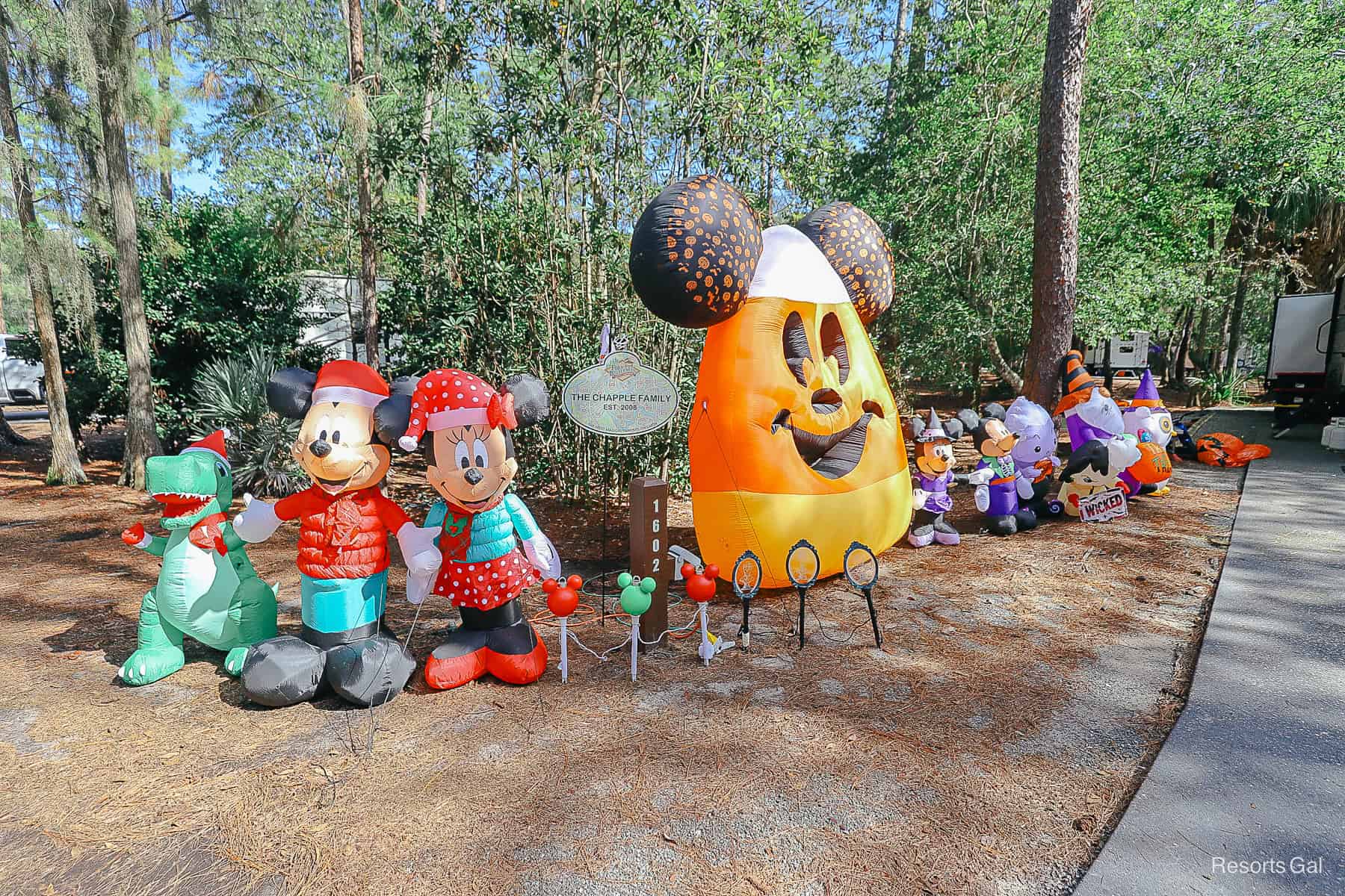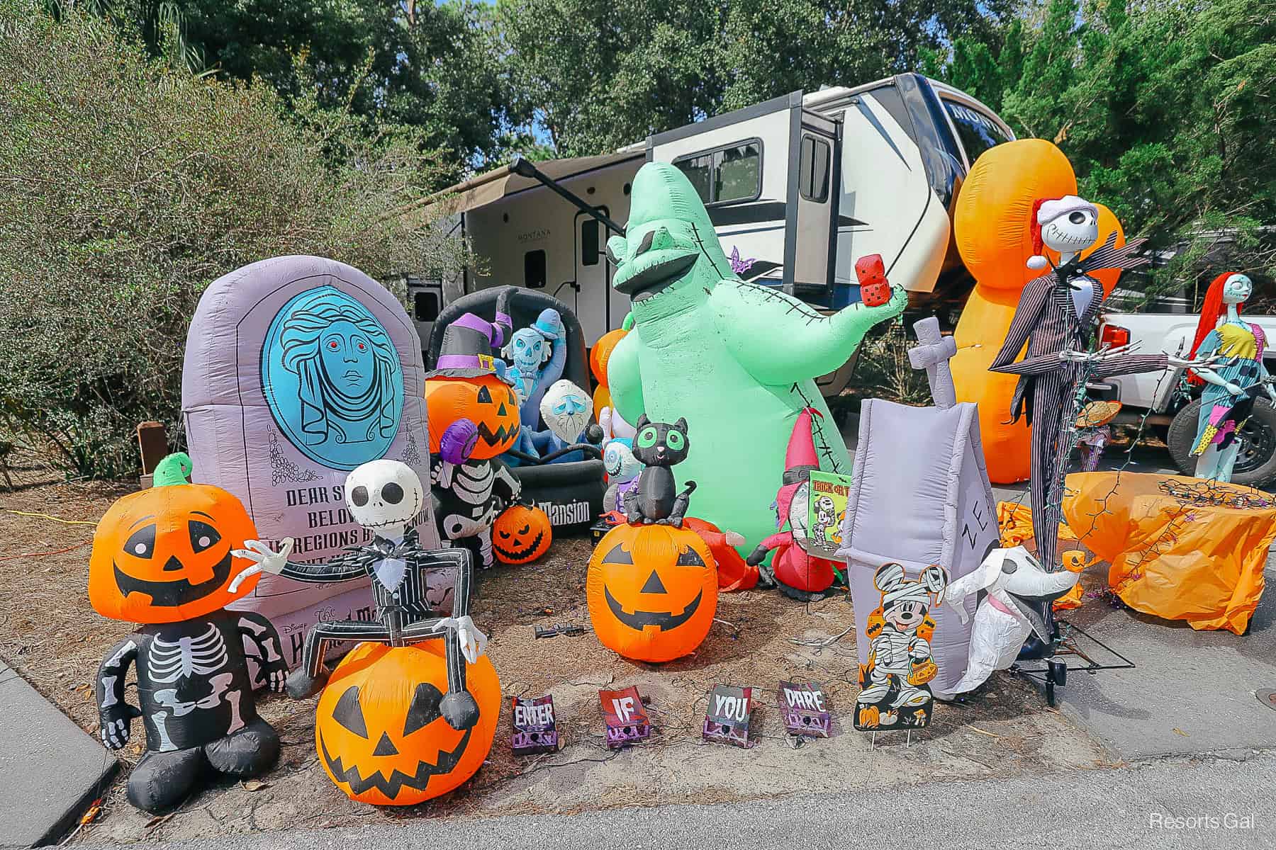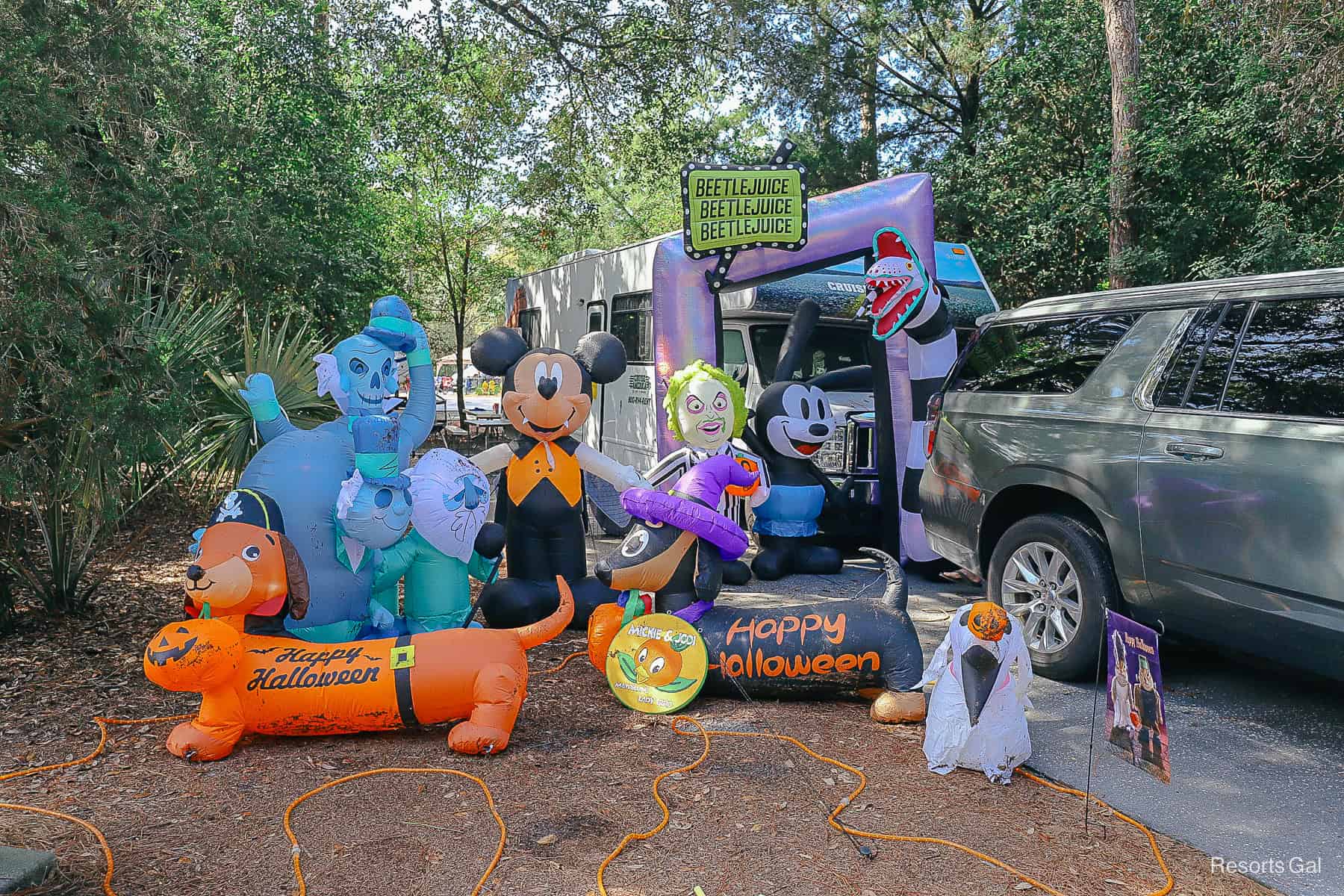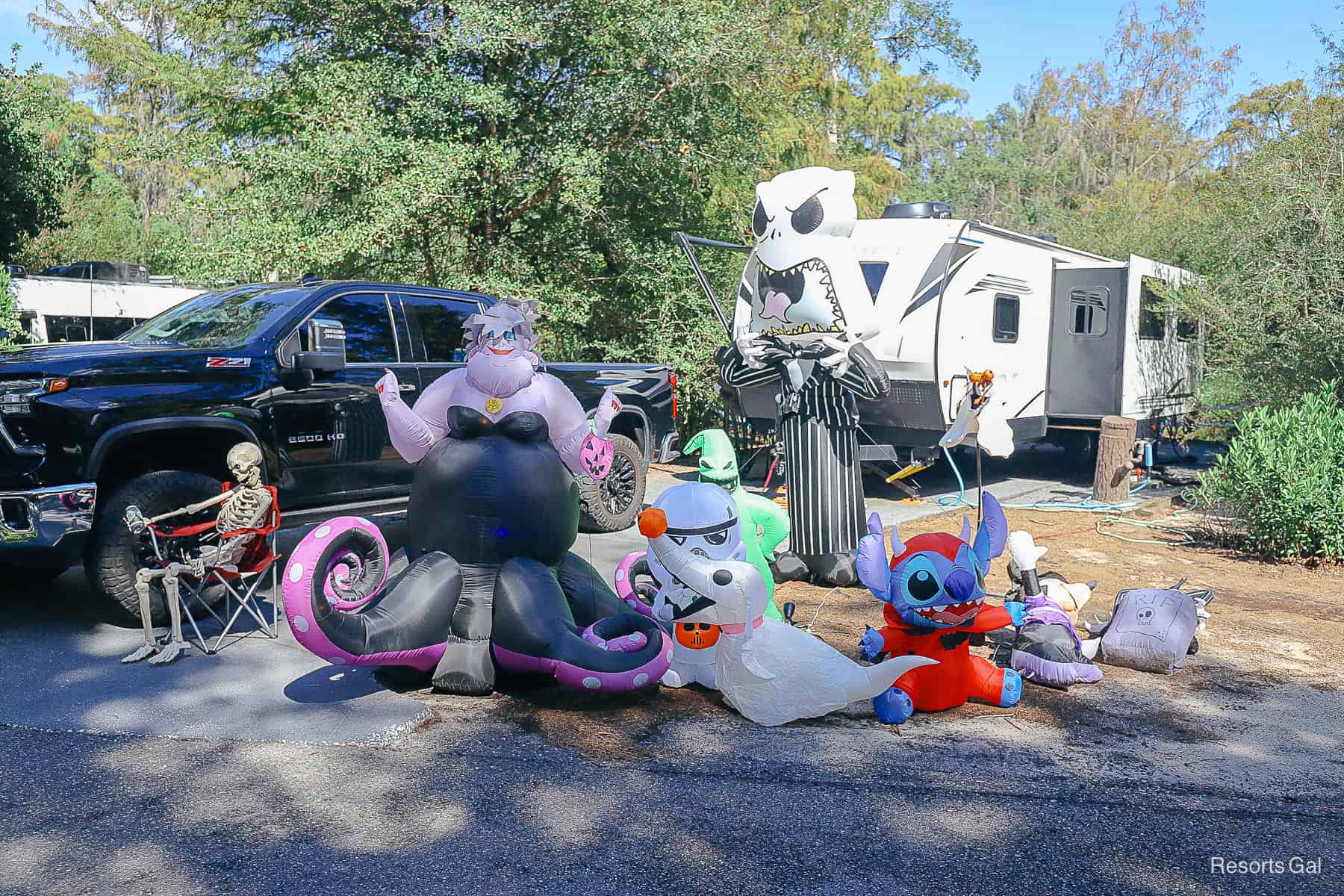 Every year, guests of Disney’s Fort Wilderness Resort and Campground go all out in a competition to be the best-dressed campsite for Halloween. Throughout each loop, you’ll find anything from subtle Halloween decor to the entire inflatable department from the nearest Spirit Halloween. Some sites are family-friendly while others feature clowns. I can promise that you’ll find lots of Hitchhiking Ghosts, Mickey and Minnie Mouse in a variety of costumes, and Jack Skellington galore.