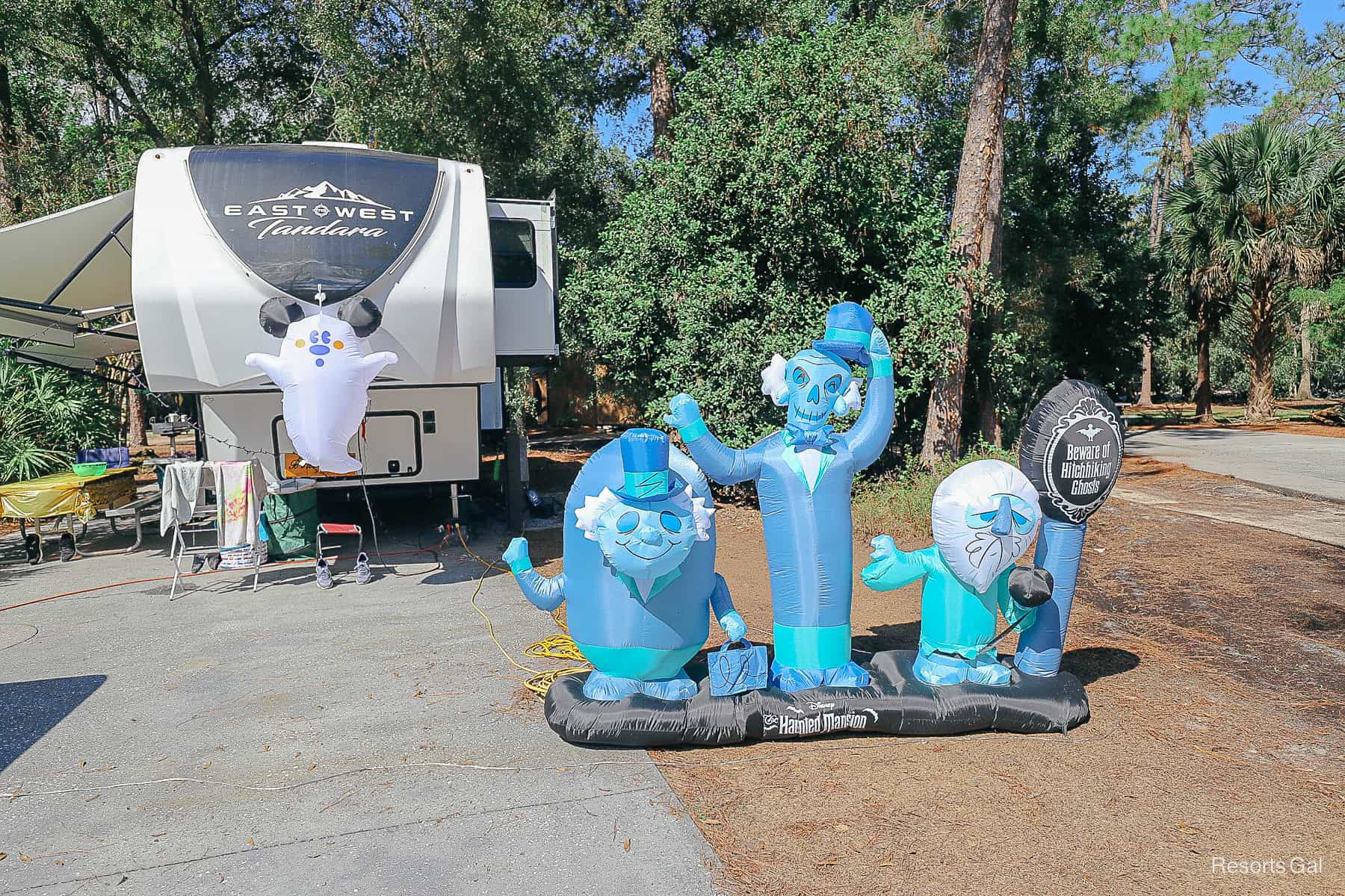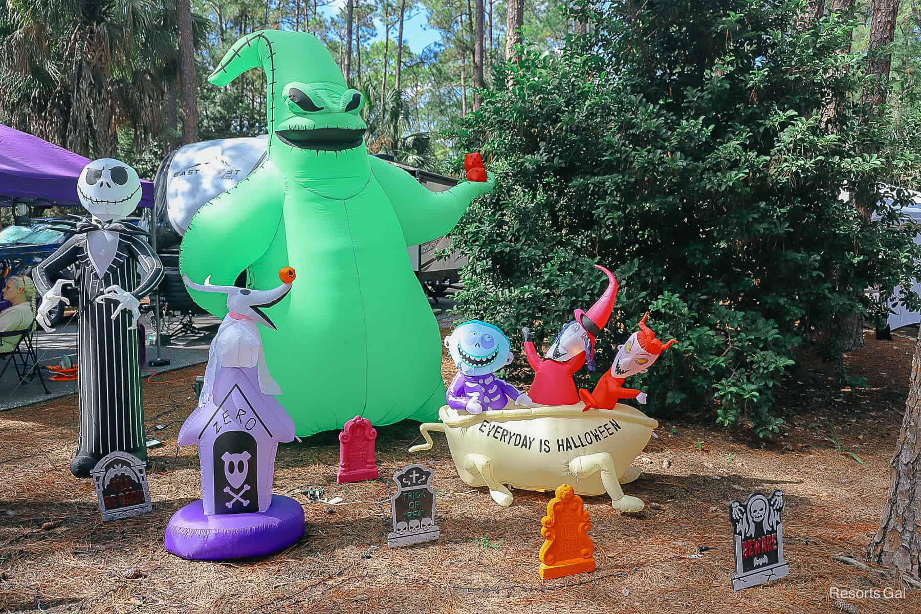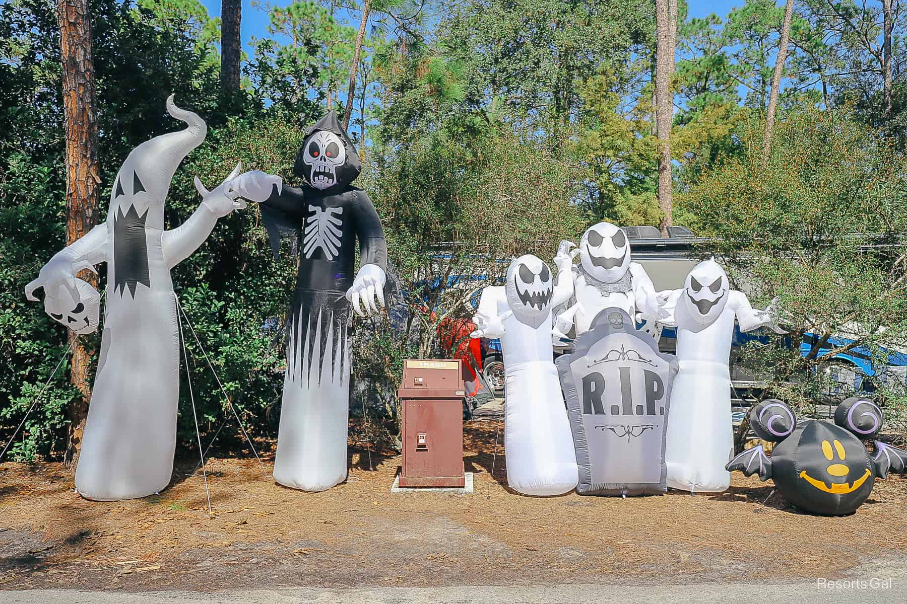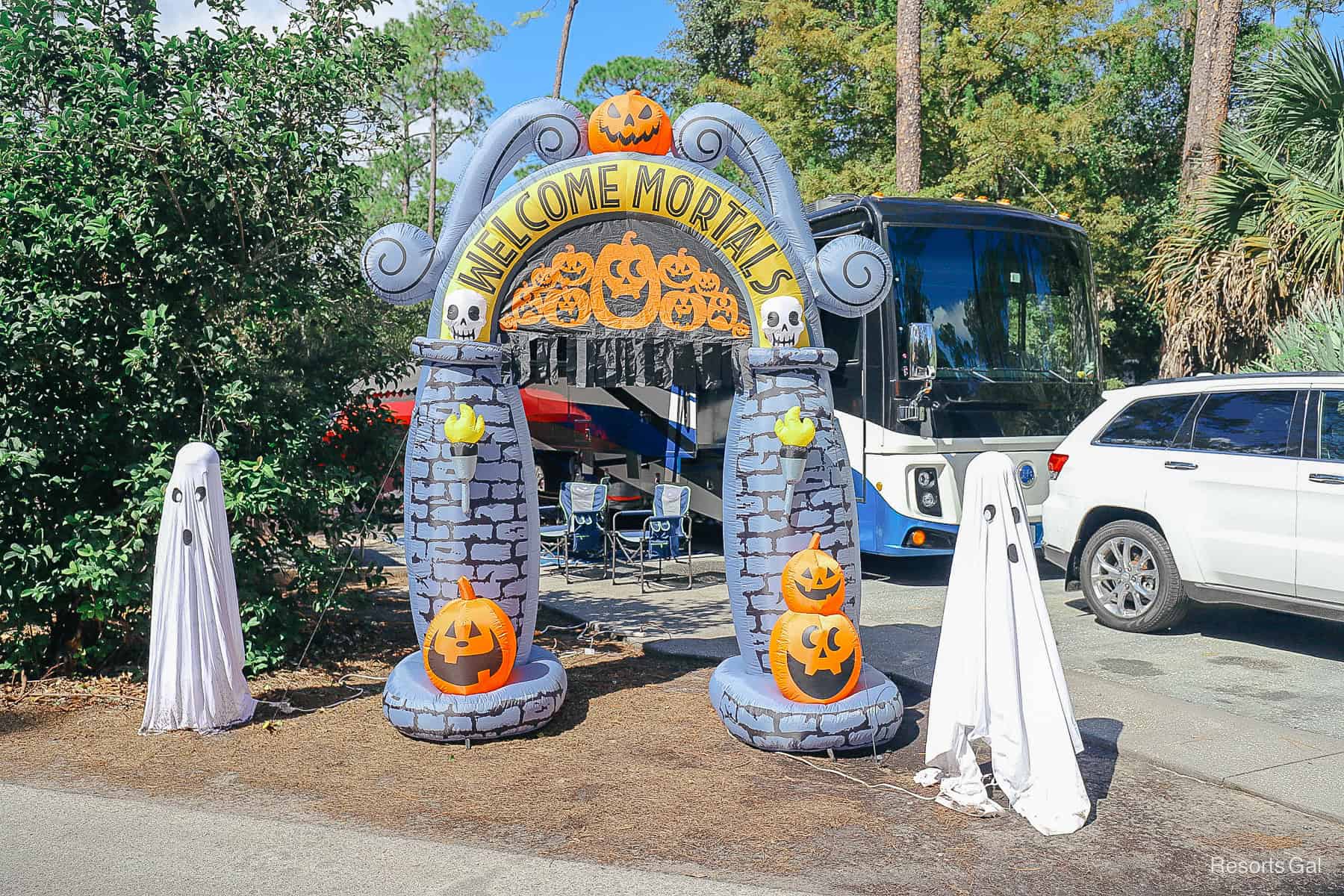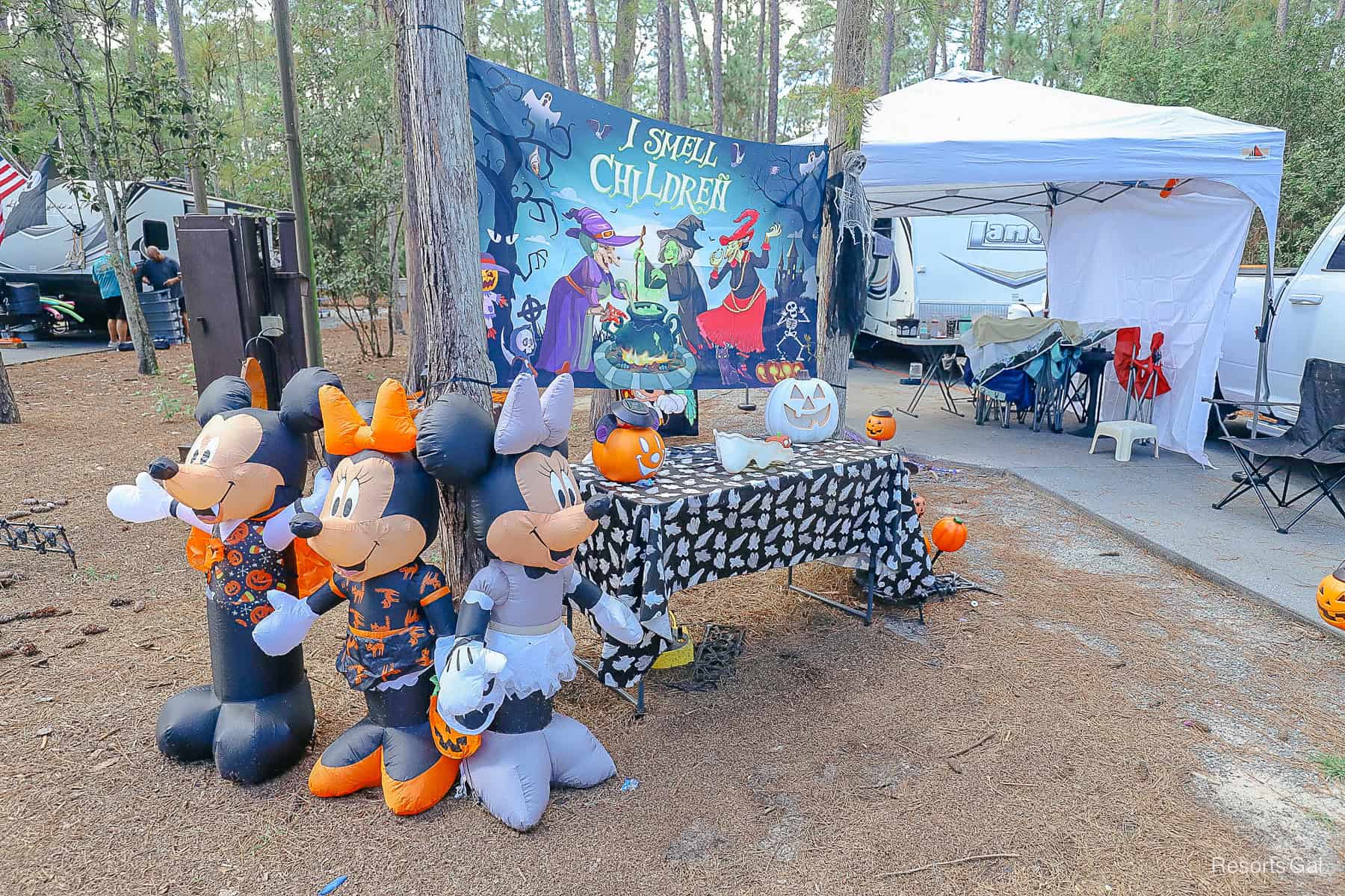 Every year, guests of Disney’s Fort Wilderness Resort and Campground go all out in a competition to be the best-dressed campsite for Halloween. Throughout each loop, you’ll find anything from subtle Halloween decor to the entire inflatable department from the nearest Spirit Halloween. Some sites are family-friendly while others feature clowns. I can promise that you’ll find lots of Hitchhiking Ghosts, Mickey and Minnie Mouse in a variety of costumes, and Jack Skellington galore.