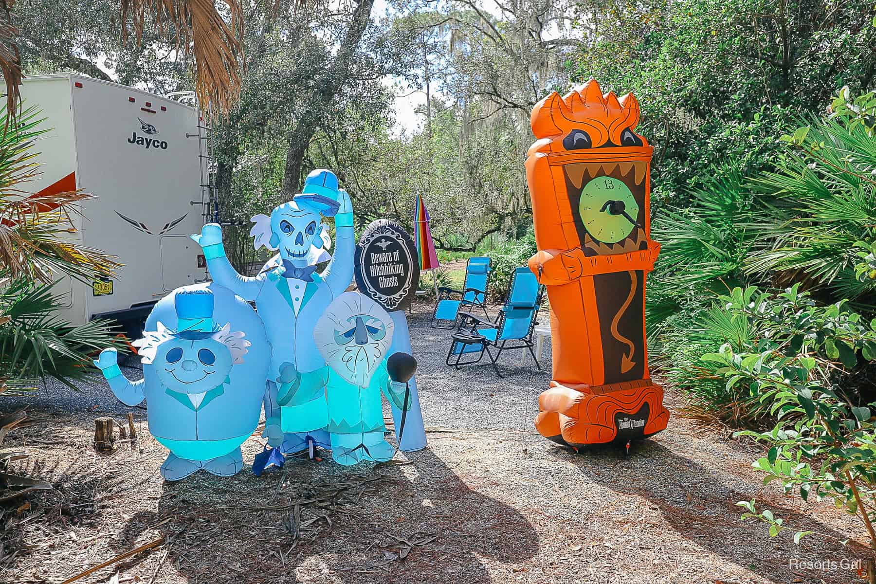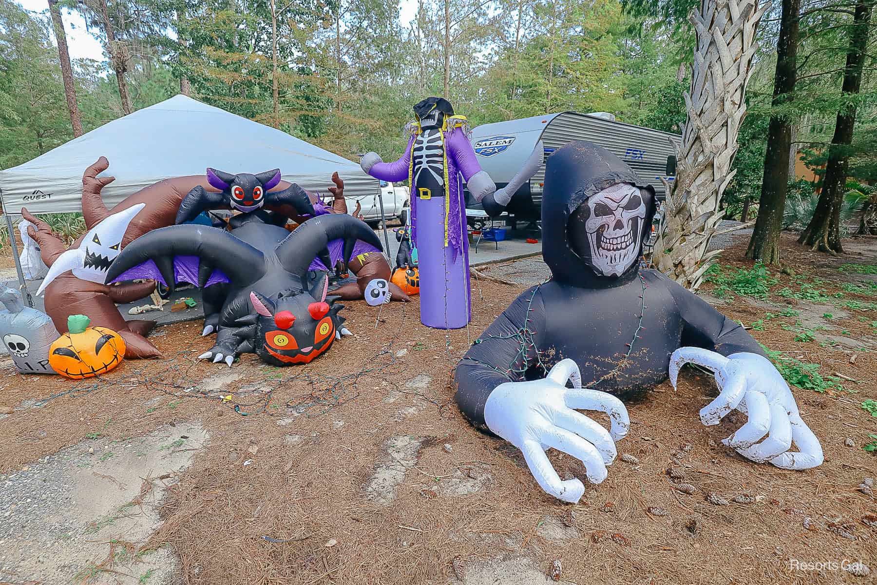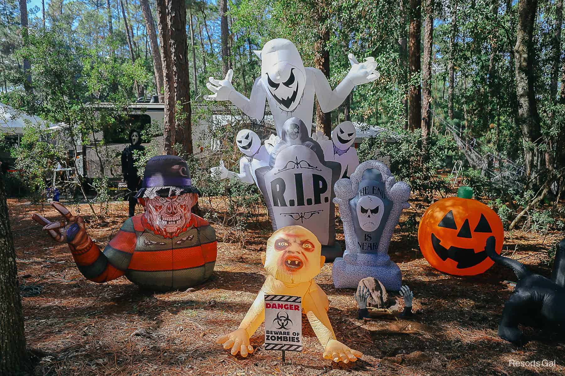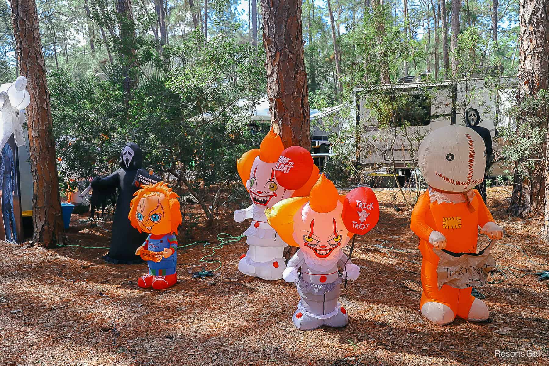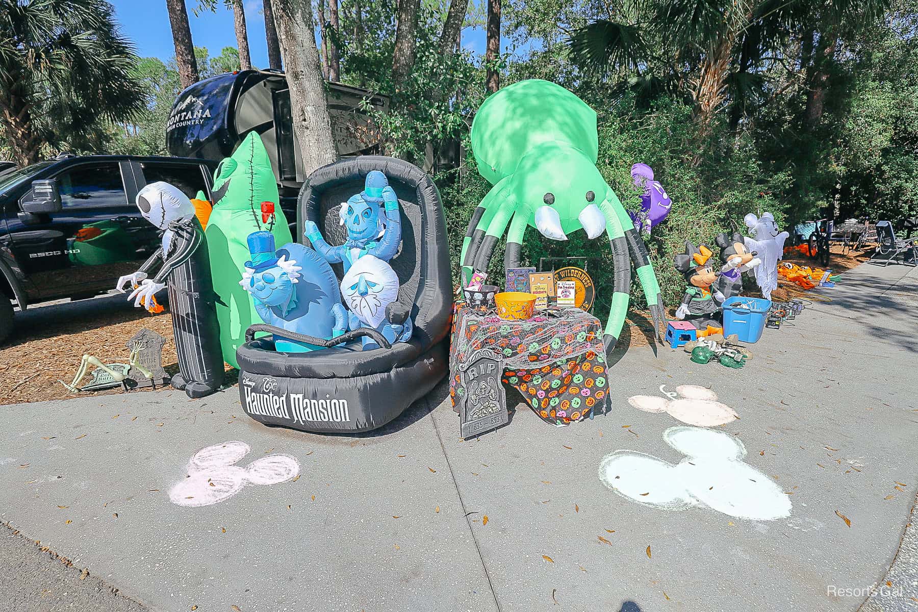 Every year, guests of Disney’s Fort Wilderness Resort and Campground go all out in a competition to be the best-dressed campsite for Halloween. Throughout each loop, you’ll find anything from subtle Halloween decor to the entire inflatable department from the nearest Spirit Halloween. Some sites are family-friendly while others feature clowns. I can promise that you’ll find lots of Hitchhiking Ghosts, Mickey and Minnie Mouse in a variety of costumes, and Jack Skellington galore.