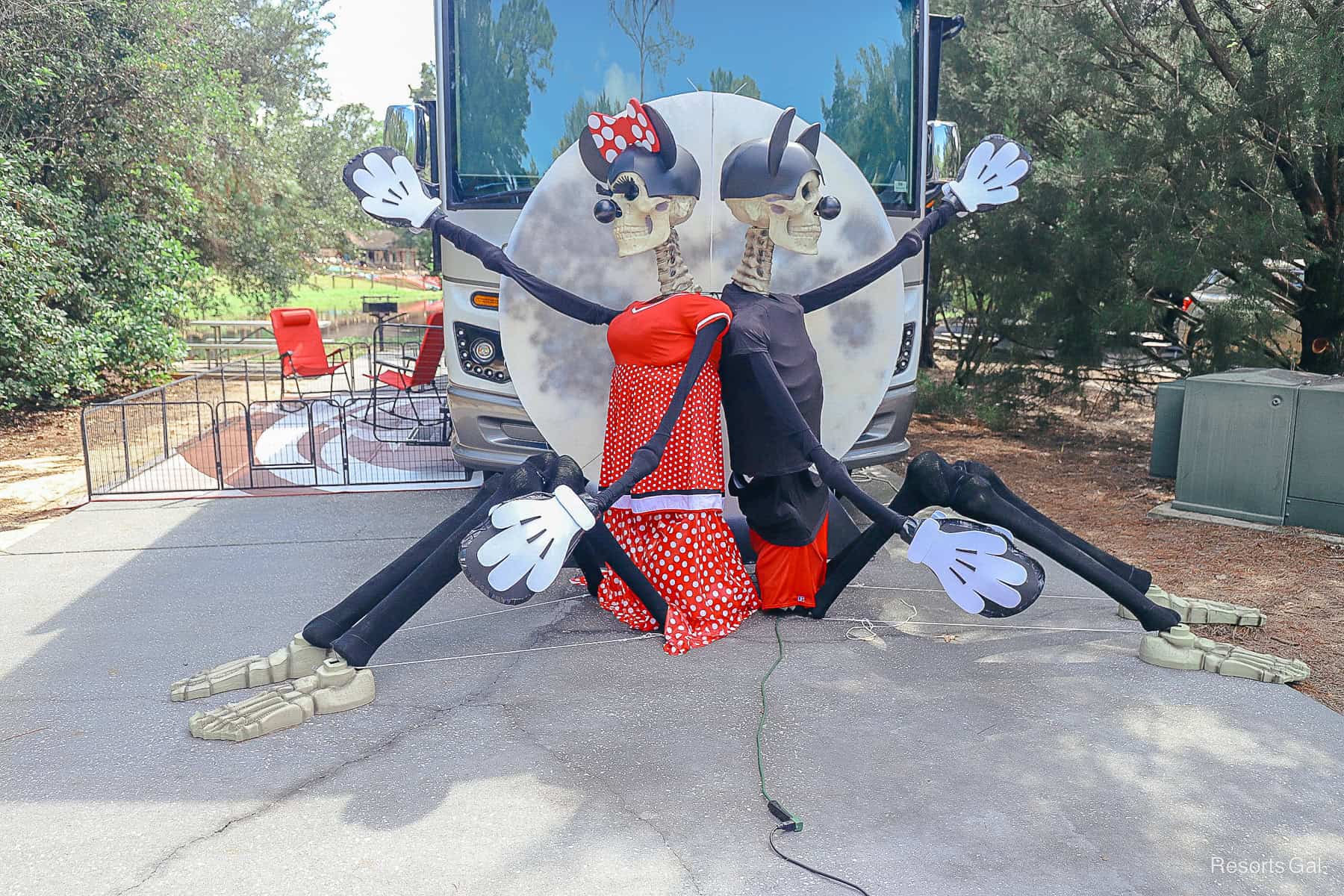 Here are Mickey and Minnie Mouse in oversized skeleton forms.
