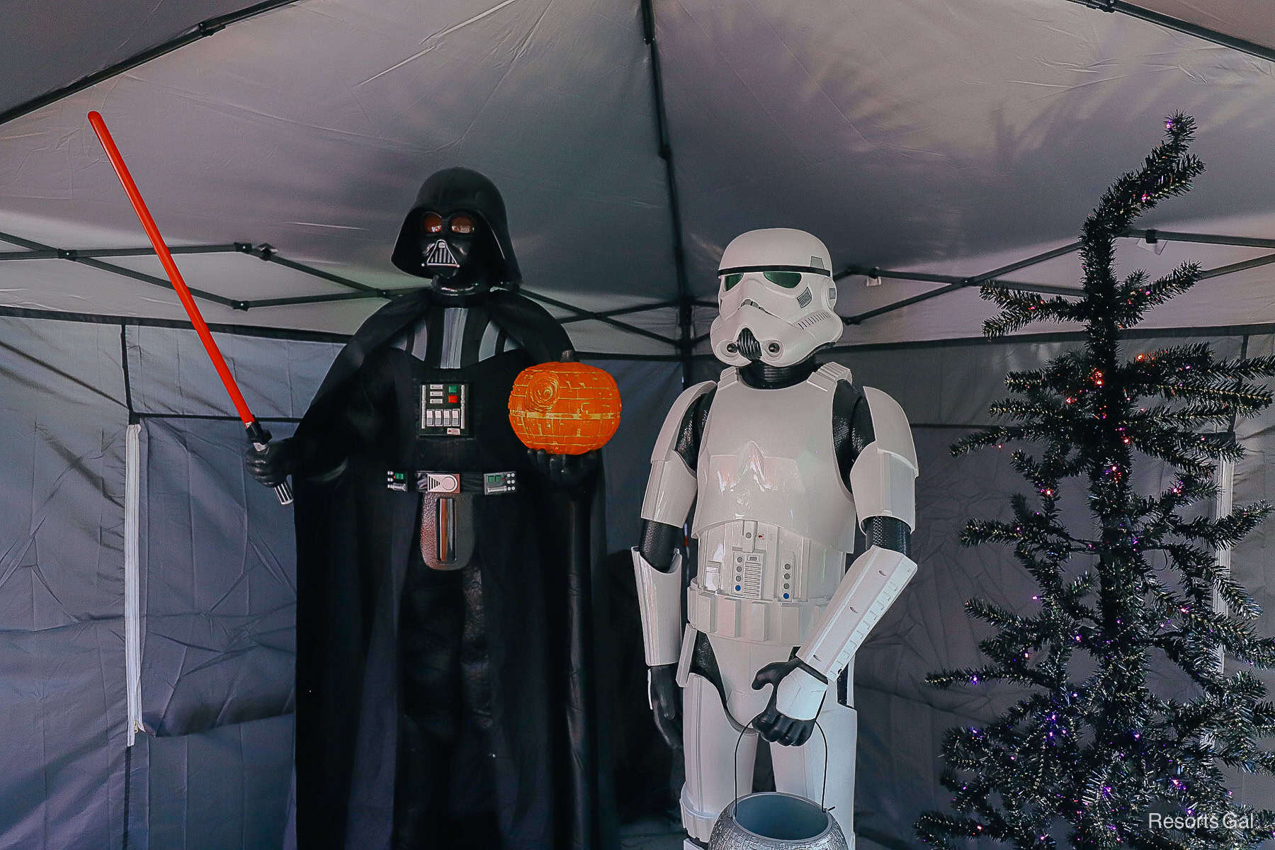 Yes, Darth Vader is holding a Death Star carved pumpkin. That’s not something you see every day.