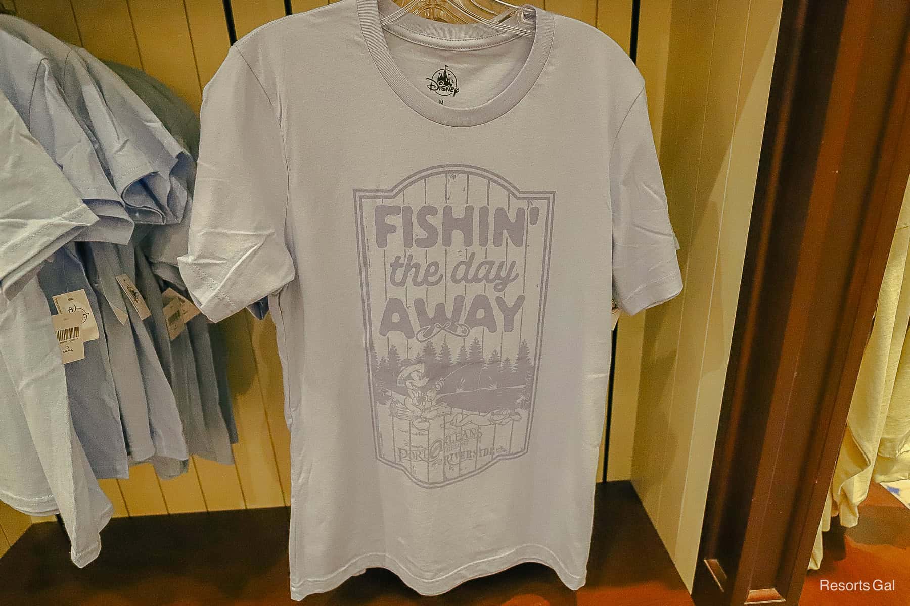 Lastly, we see a child’s t-shirt and an adult’s shirt. Both represent fishing at Disney’s Port Orleans Riverside.
