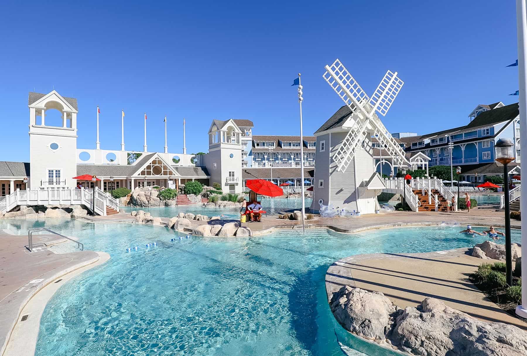 Disney’s Yacht and Beach Club Resorts share a massive pool area with a shipwreck, a 230-foot water slide, a lazy river, and more! While ranking some of the pools was difficult, there were never any questions about which would come in first.