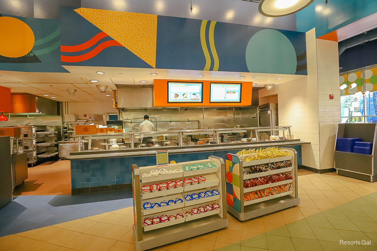 Everything Pop Shopping and Dining is the name of the combined food court and gift shop at Disney’s Pop Century Resort. We have separate coverage of Pop Century’s gift shop that includes photos of the sundries you might find during your visit. This guide focuses specifically on the resort’s food court. Below, we’ll discuss location details, hours of operation, and menus to help you plan your stay.