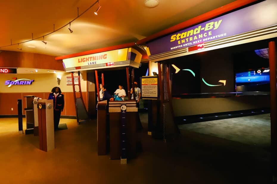 Soarin’ has a Lightning Lane entrance for those who purchase Multi Pass and select this attraction as one of their experiences. A standby queue is also available. Guests must transfer from a wheelchair or ECV to experience this attraction.