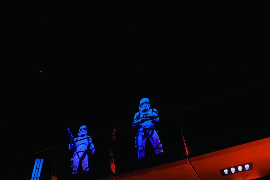 From the ship, you can see out the window to outer space. Unfortunately, it doesn’t take long for the Empire to seize your ship. I guess someone in your group should have remembered that clearance code. Things go from exciting to intimidating as you disembark to an army of stormtroopers. While these are animatronics, make sure to pay close attention to their subtle movements.
