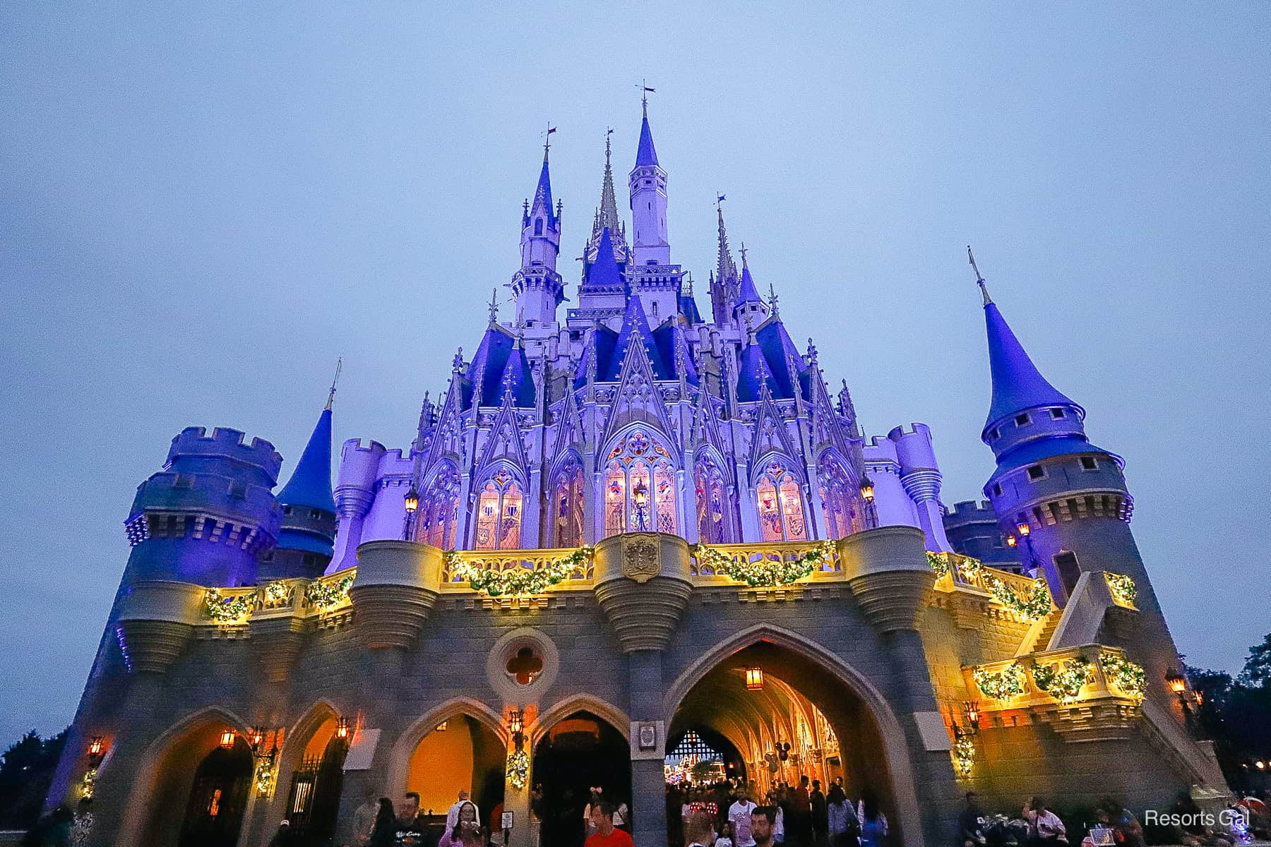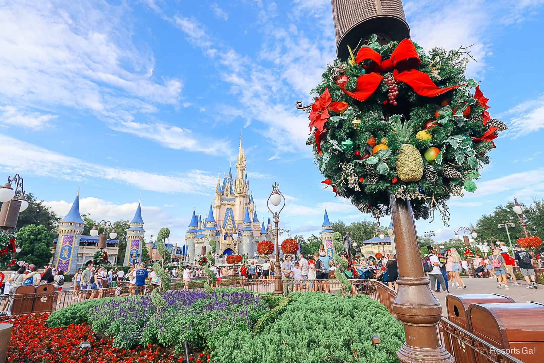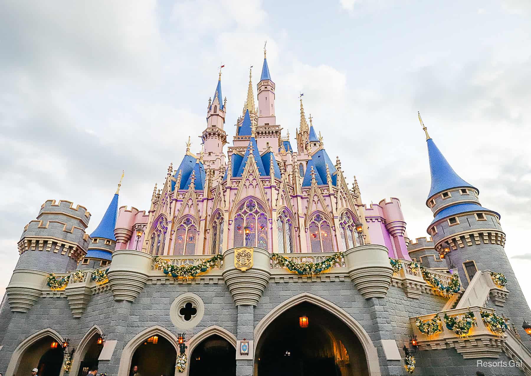 Cinderella Castle doesn’t have too many holiday decorations installed.