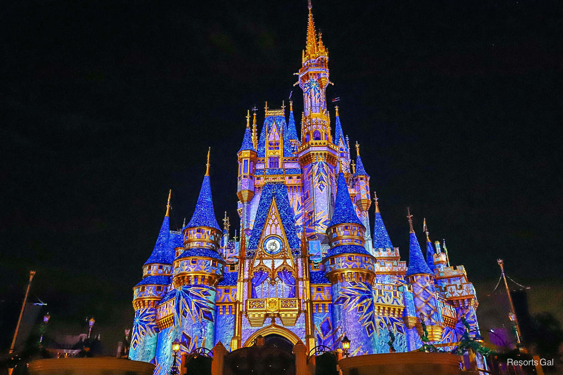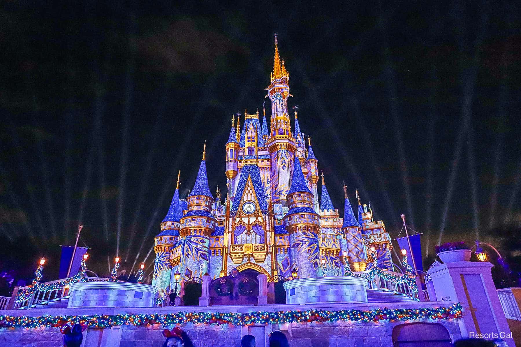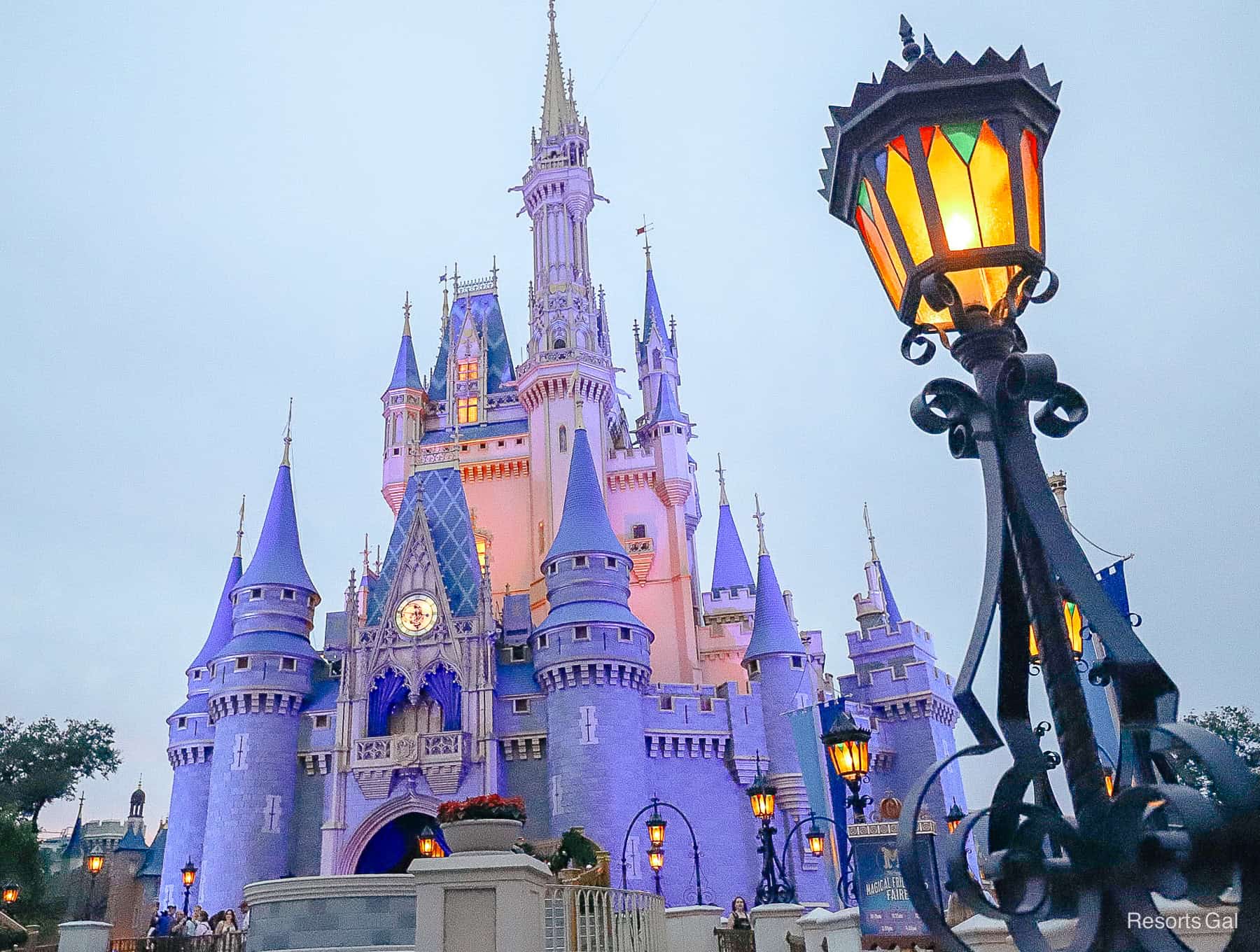 Cinderella Castle doesn’t have too many holiday decorations installed.