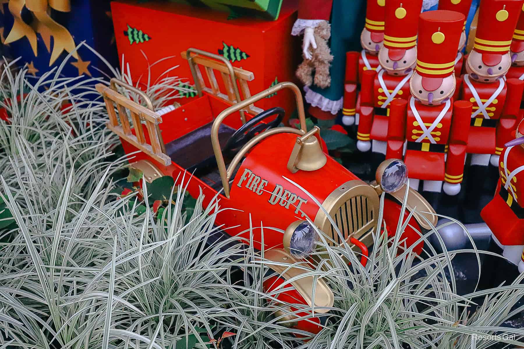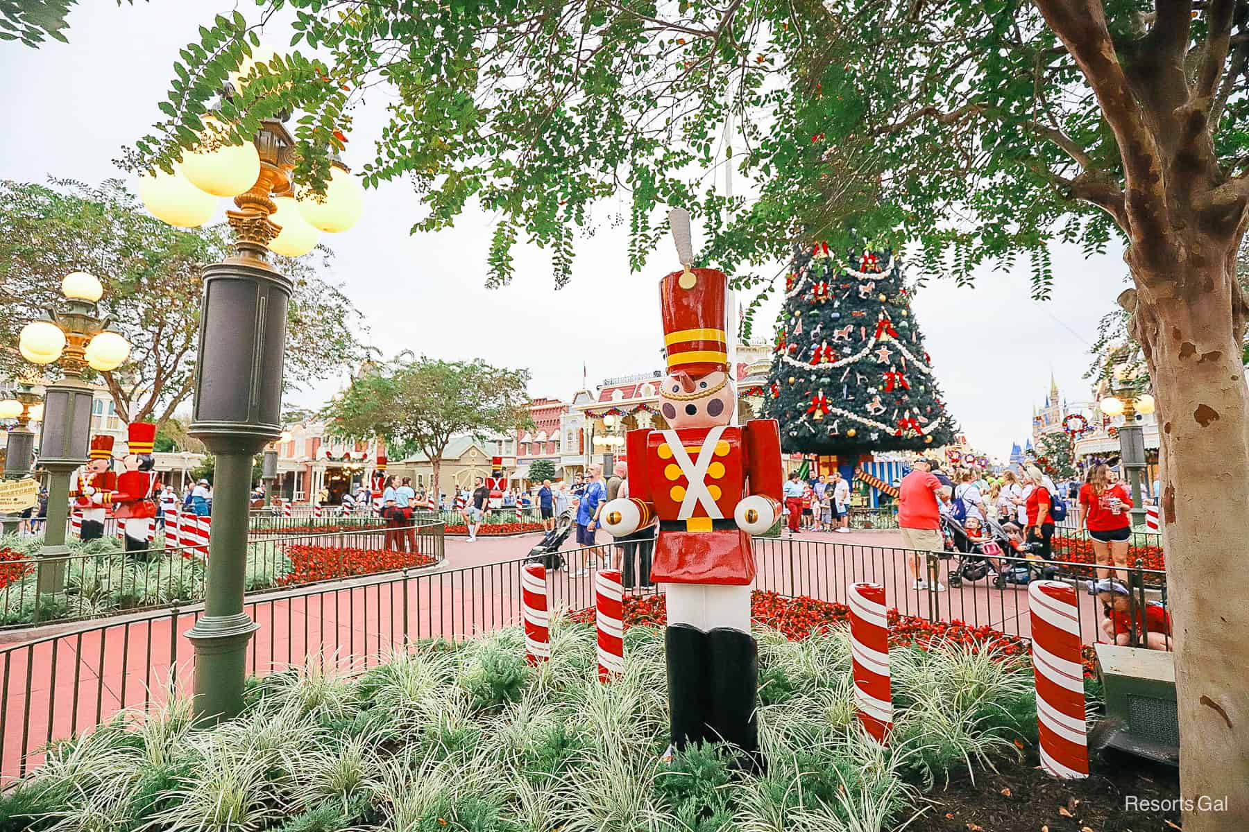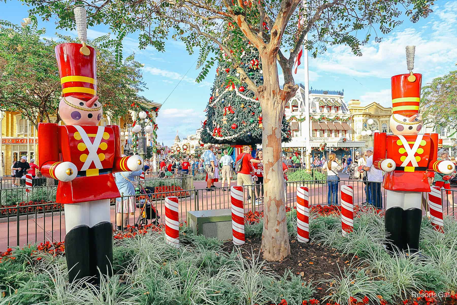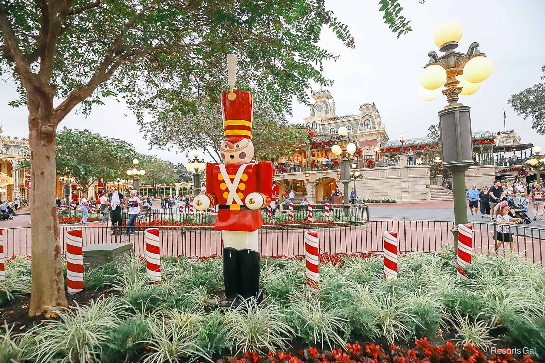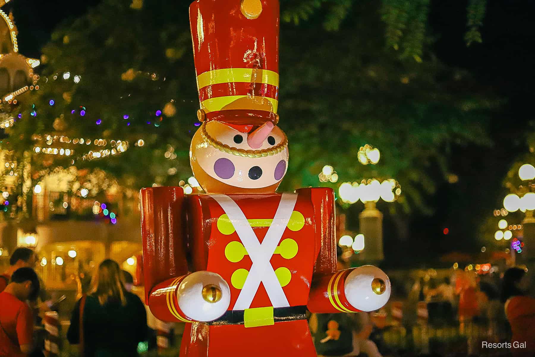 The toy soldiers are from Babes in Toyland, and they also march in Magic Kingdom’s Christmas Parade. If you listen closely, you might hear Toyland. It’s part of the background music loop during the holidays.