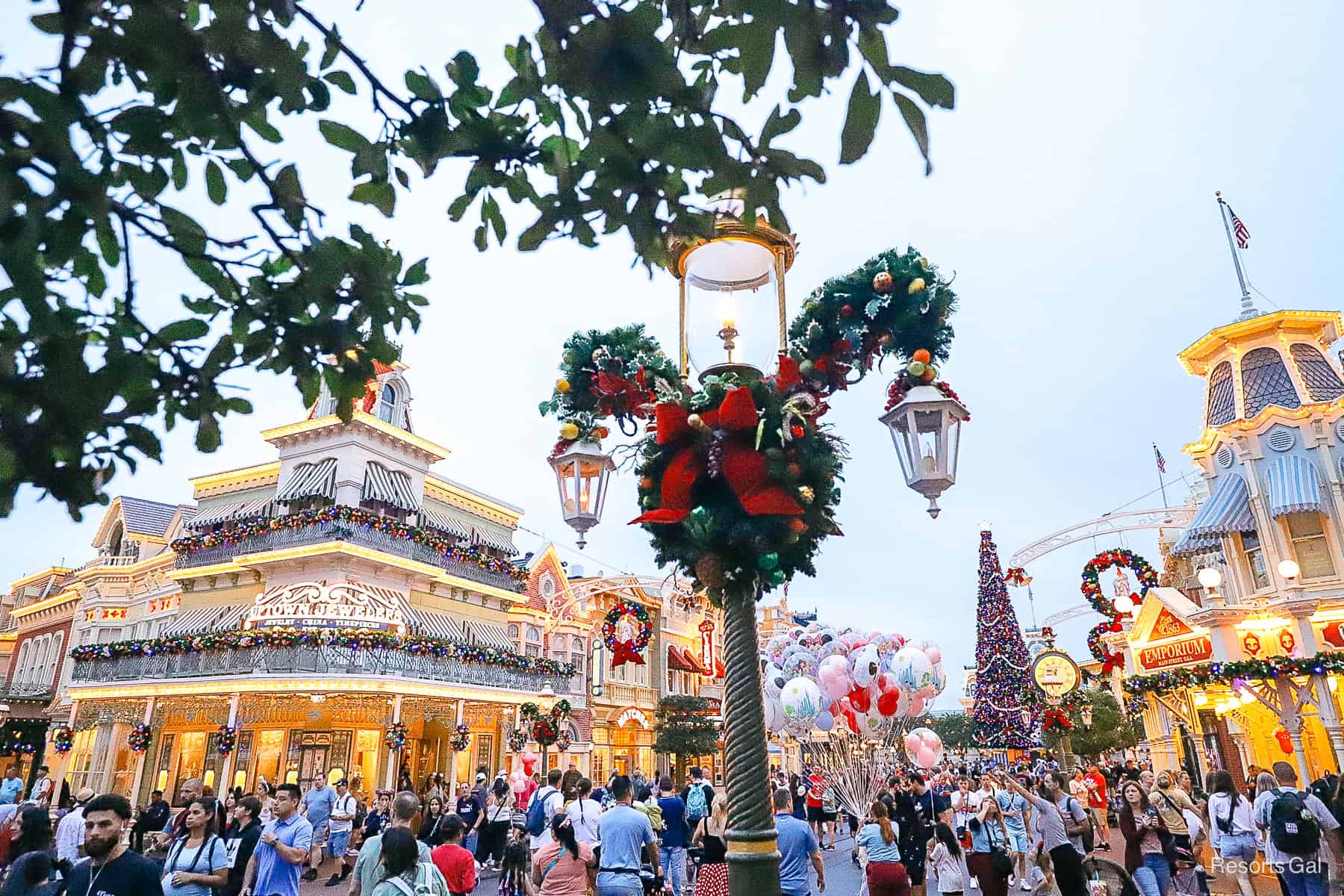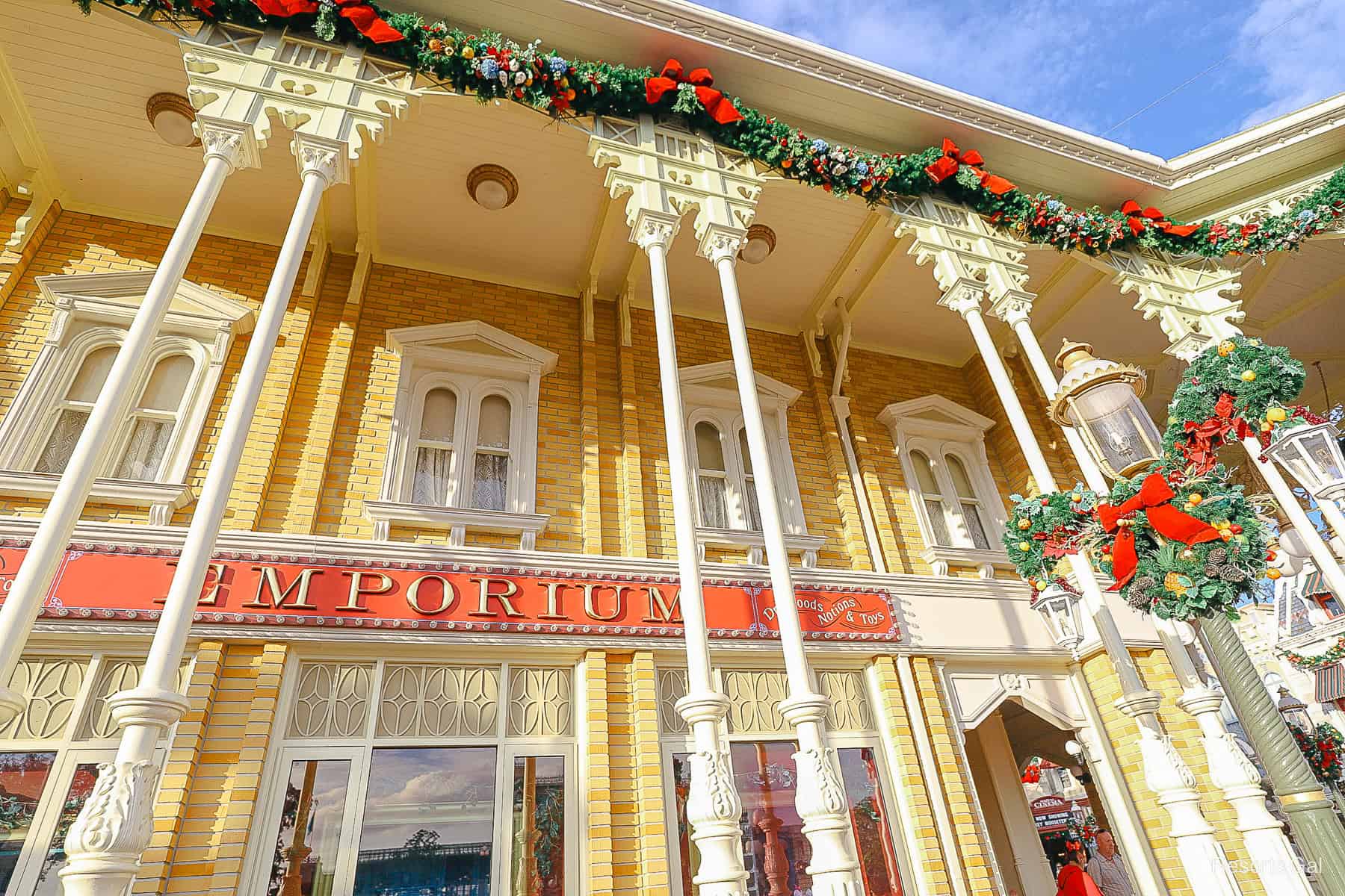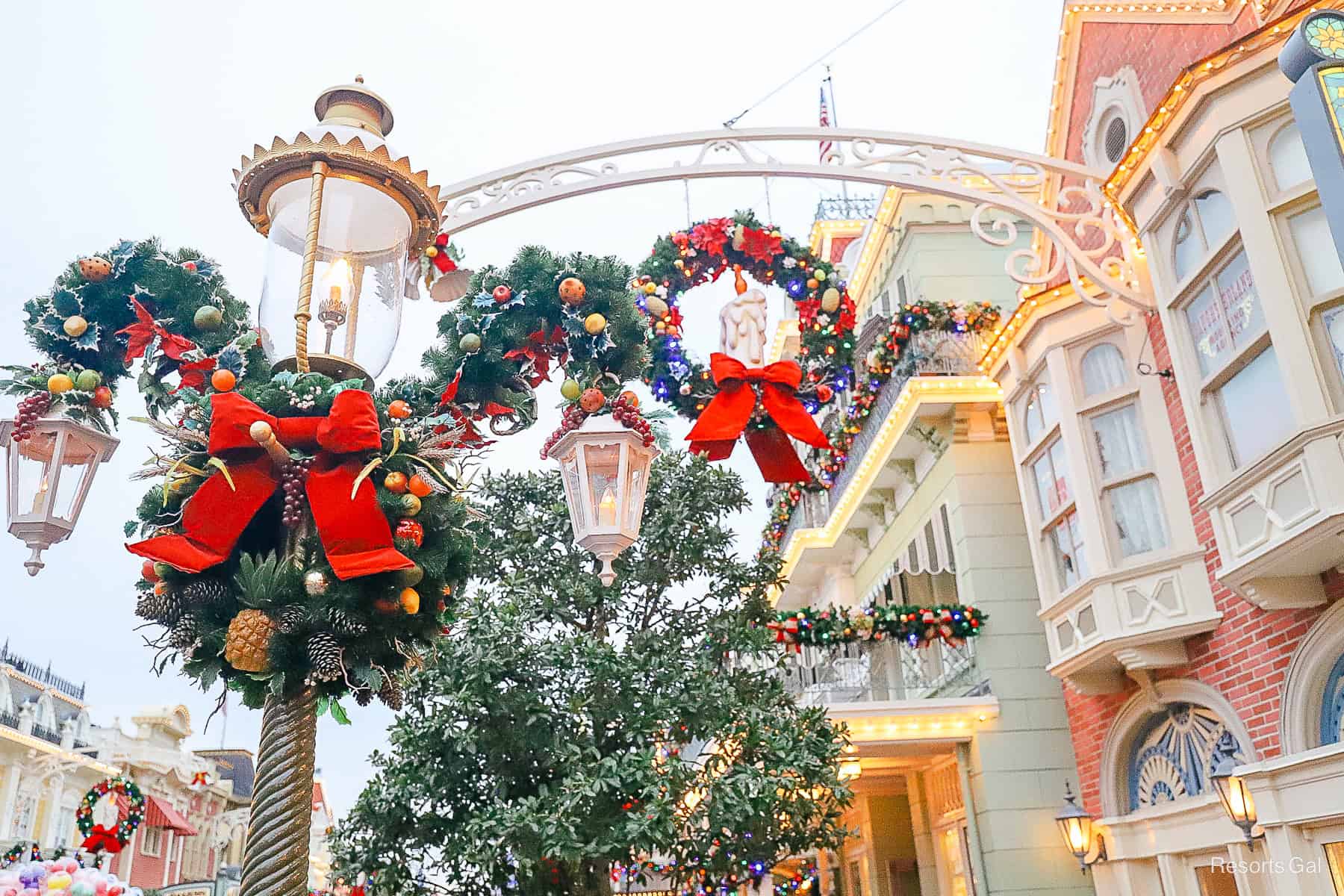 I don’t know about you, but when I think of Christmastime at Disney World, the holiday decor on Main Street U.S.A. is the first thing that comes to mind. It’s not just one thing in particular. It’s the velvet red bows galore, the Mickey-shaped wreaths adorning the lamp posts, and the subtle sounds of holiday tunes playing lightly in the background. Let’s face it. If the Christmas tunes aren’t playing, the bells aren’t ringing, and it’s not quite Christmas yet. You know it’s true.